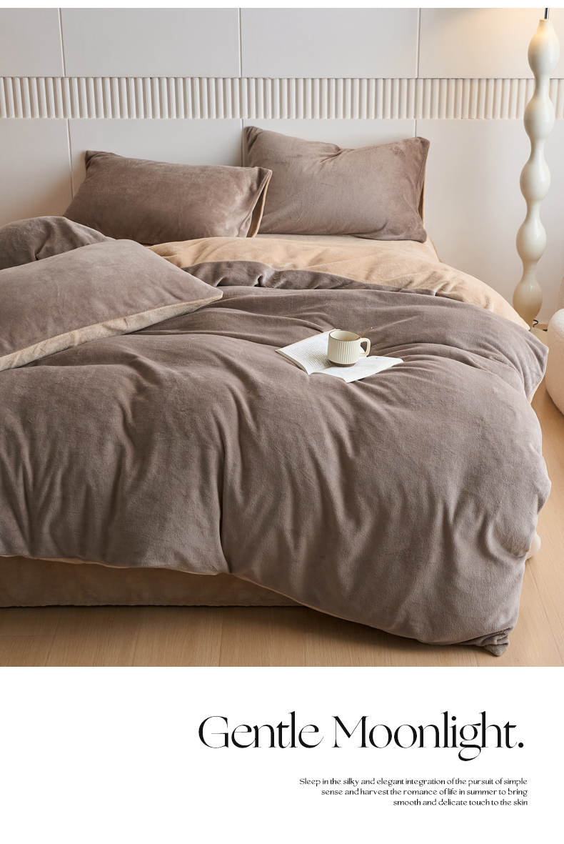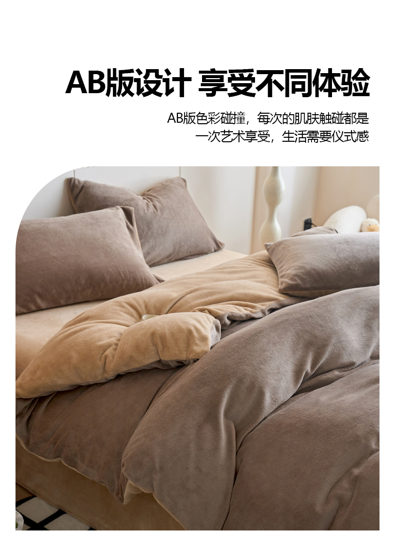 当前位置: 91家纺网 > 商品网购 > 床品套件 > 四件套 > 牛奶绒四件套 > 乐居家纺 2025新款200克重纯色单面绒牛奶绒四件套 摩卡棕+奶油驼