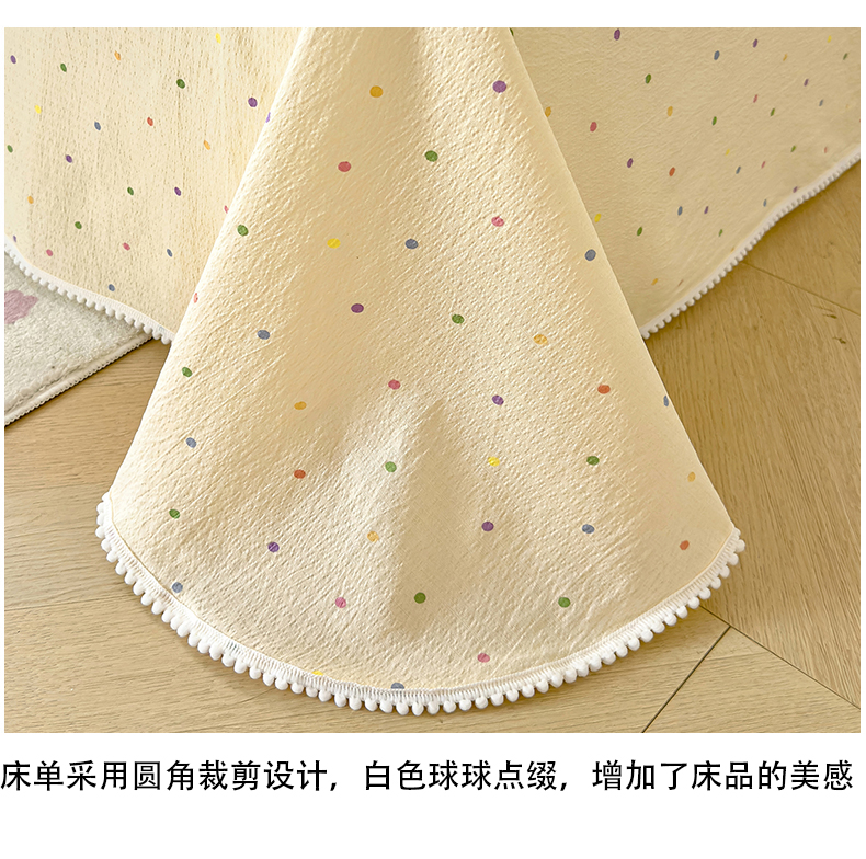 商品名称:(总)三盛源 2025新款韩版碎花球球皱皱纱双层纱水洗棉单床单床单单件
