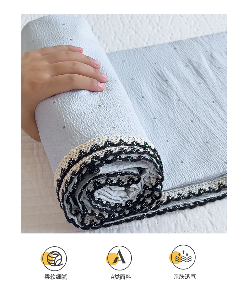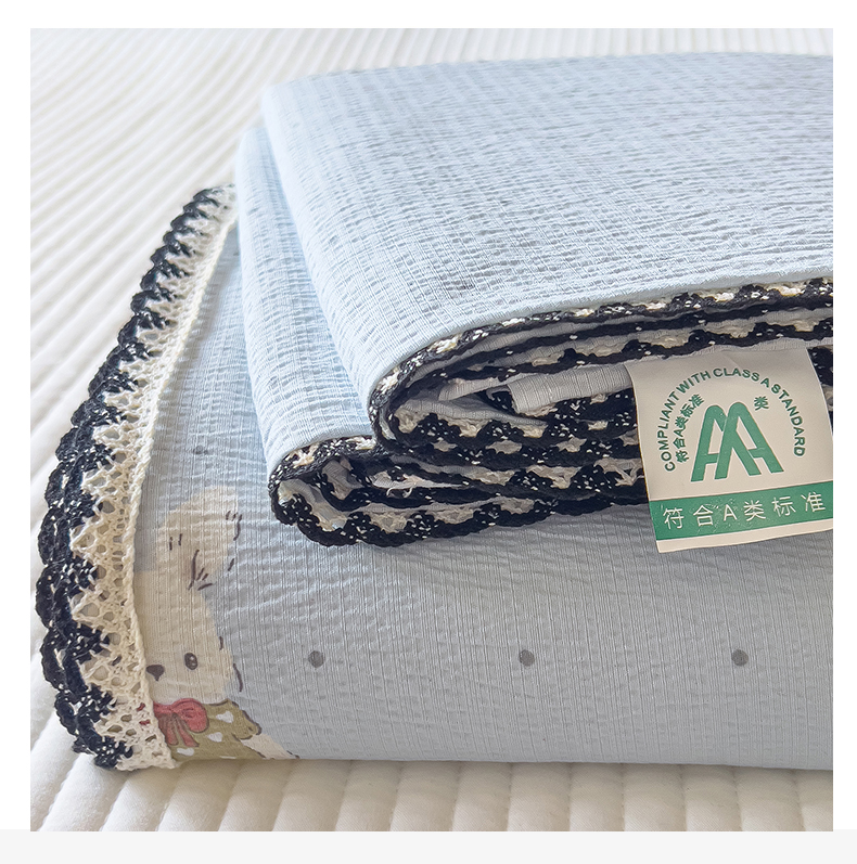 当前位置: 91家纺网 > 商品网购 > 床上用品 > 床单 > 三盛源 2025新款韩版碎花皱皱双层纱镂空花边水洗棉单床单床单单件 波点兔-蓝