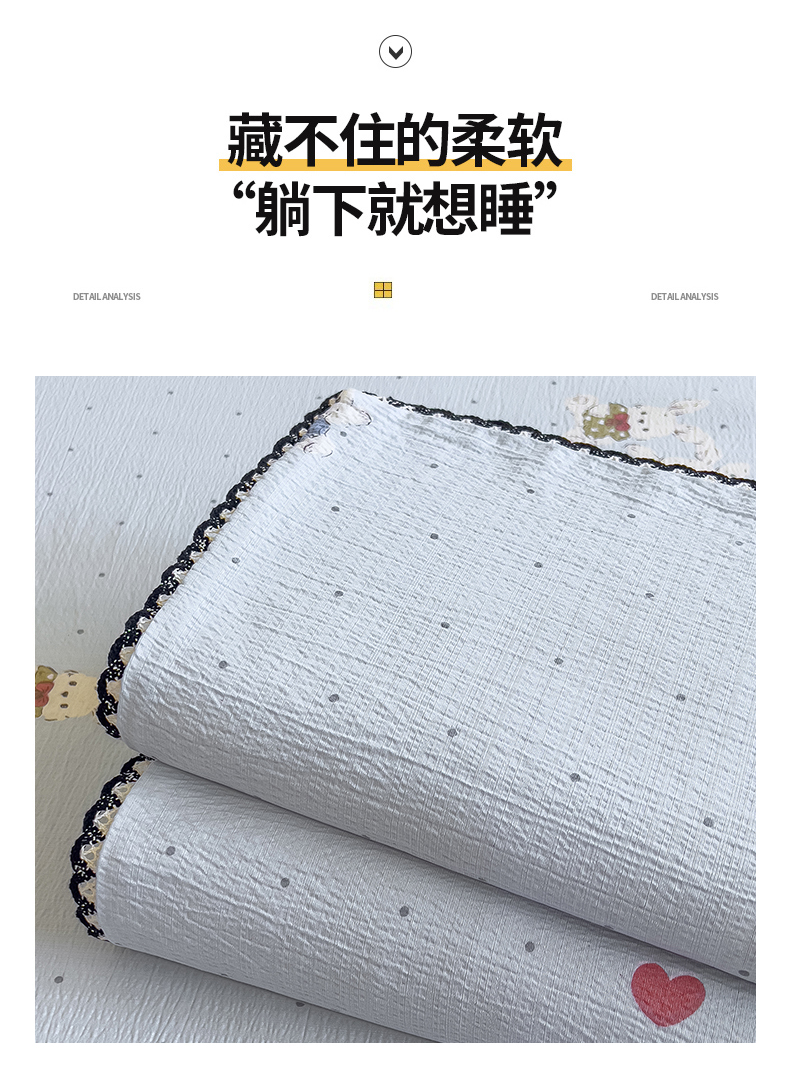 (总)三盛源 2025新款韩系小花卉镂空花边超柔皱皱双层纱水洗棉单被套被套单件,绿野,萌趣小窝,奶油星点,泡芙小狗,桃粉,絮语,紫萝漫想,紫米樱桃