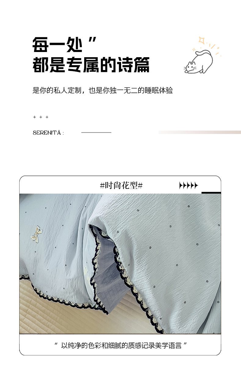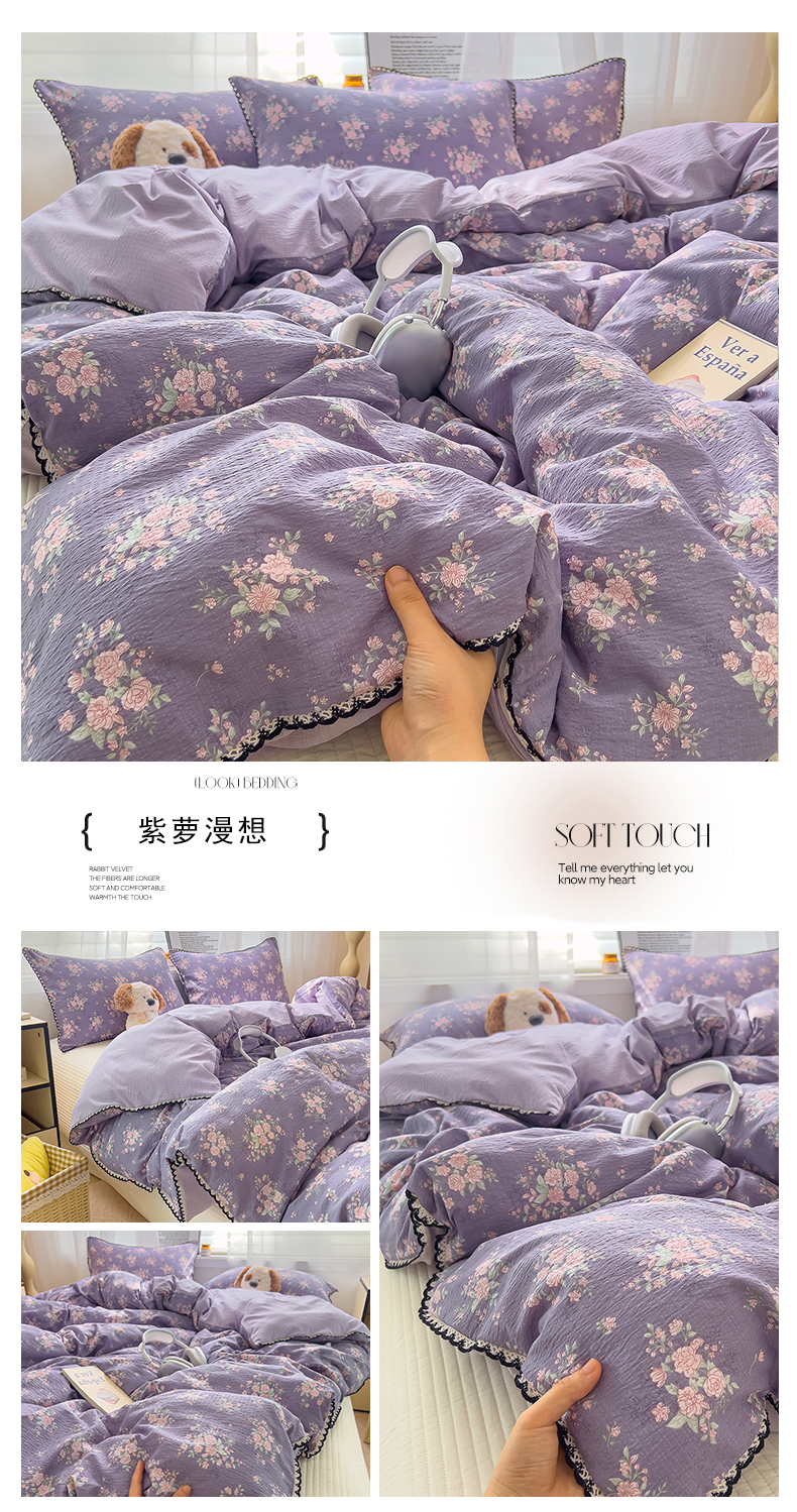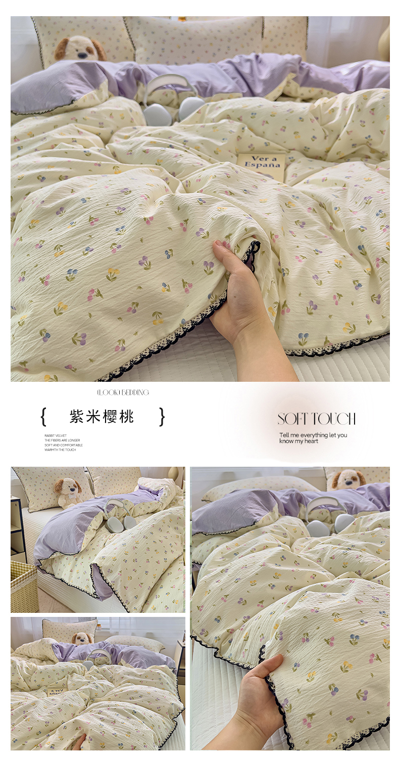 • 91家纺网 家纺一手货源 找家纺 (总)三盛源 2025新款韩系小花卉镂空花边超柔皱皱双层纱水洗棉单被套被套单件,绿野,萌趣小窝,奶油星点,泡芙小狗,桃粉,絮语,紫萝漫想,紫米樱桃