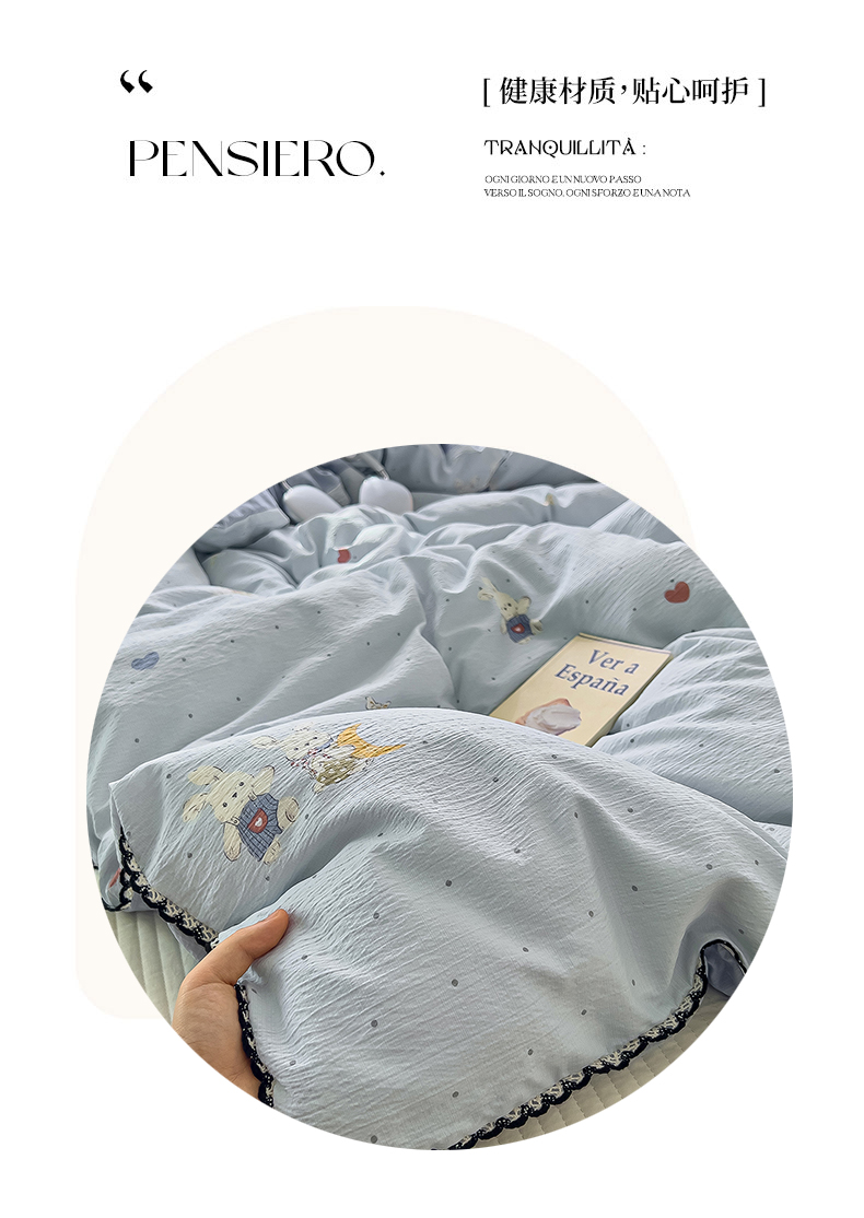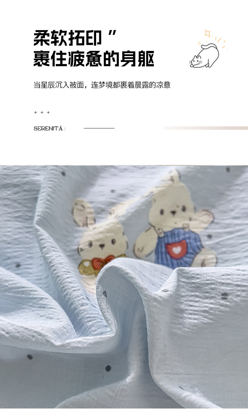 当前位置: 91家纺网 > 商品网购 > 床上用品 > 被套 > 三盛源 2025新款韩系小花卉镂空花边超柔皱皱双层纱水洗棉单被套被套单件 萌趣小窝