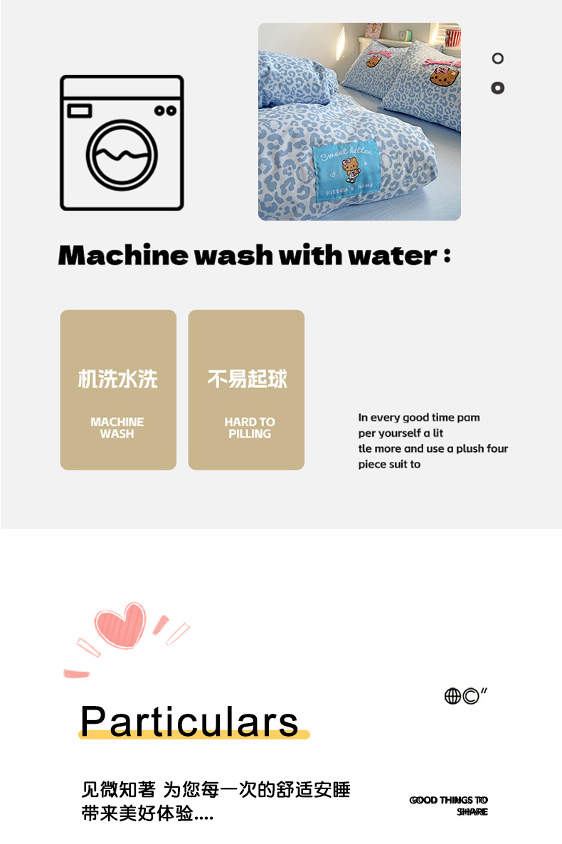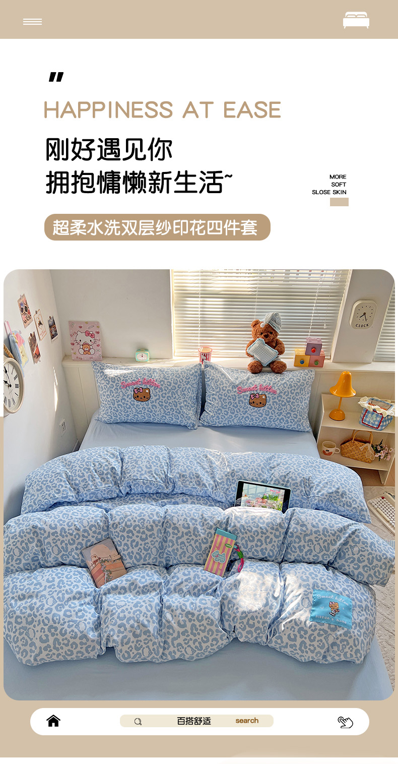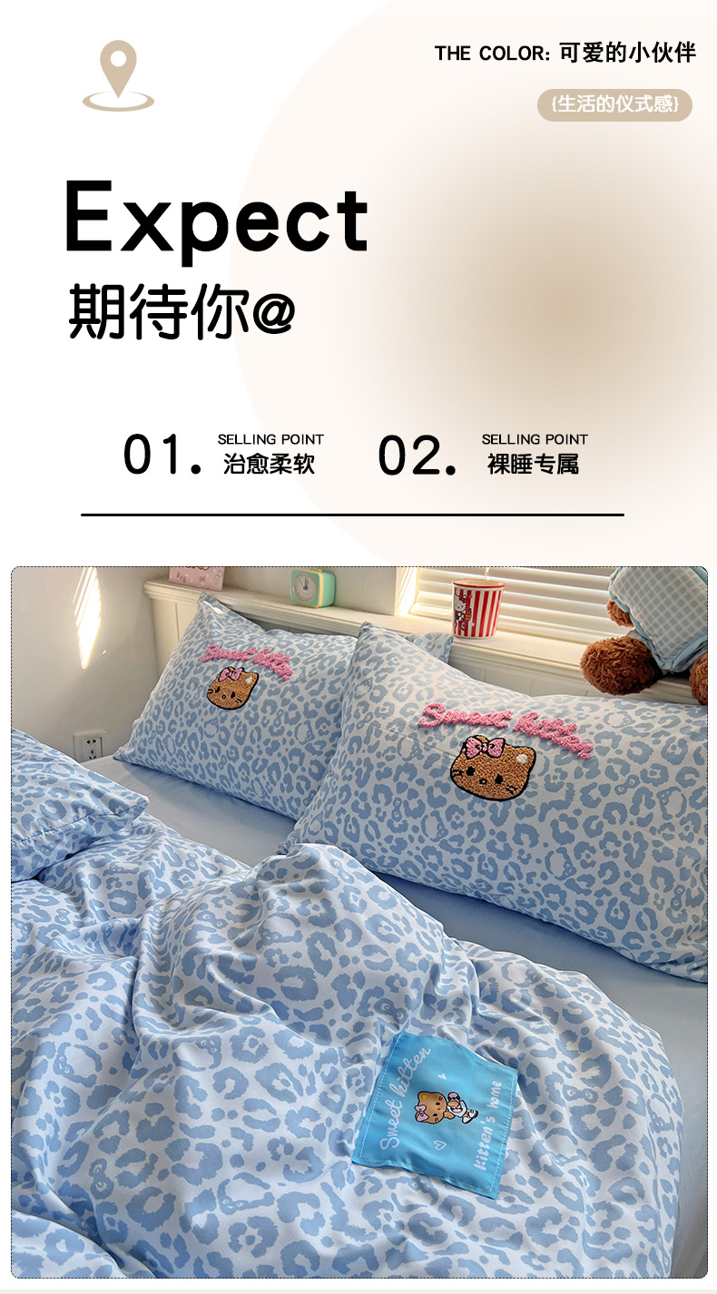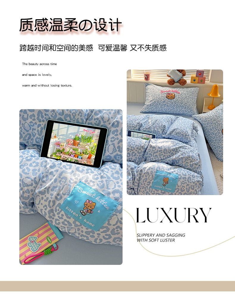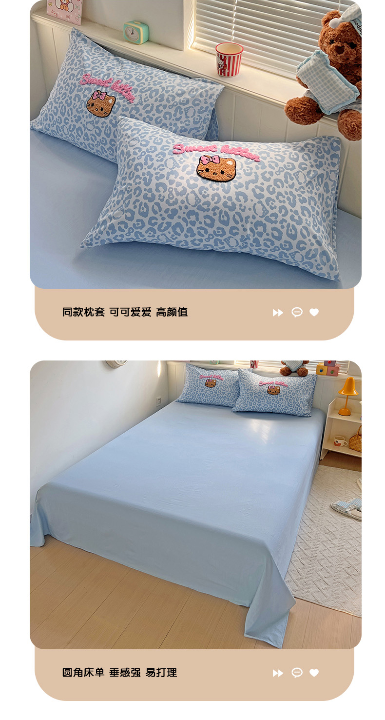 当前位置: 91家纺网 > 商品网购 > 床品套件 > 四件套 > 双层纱四件套 > 童颜 2025新款超柔水洗双层纱豹纹贴布绣印花四件套 豹纹猫咪浅蓝