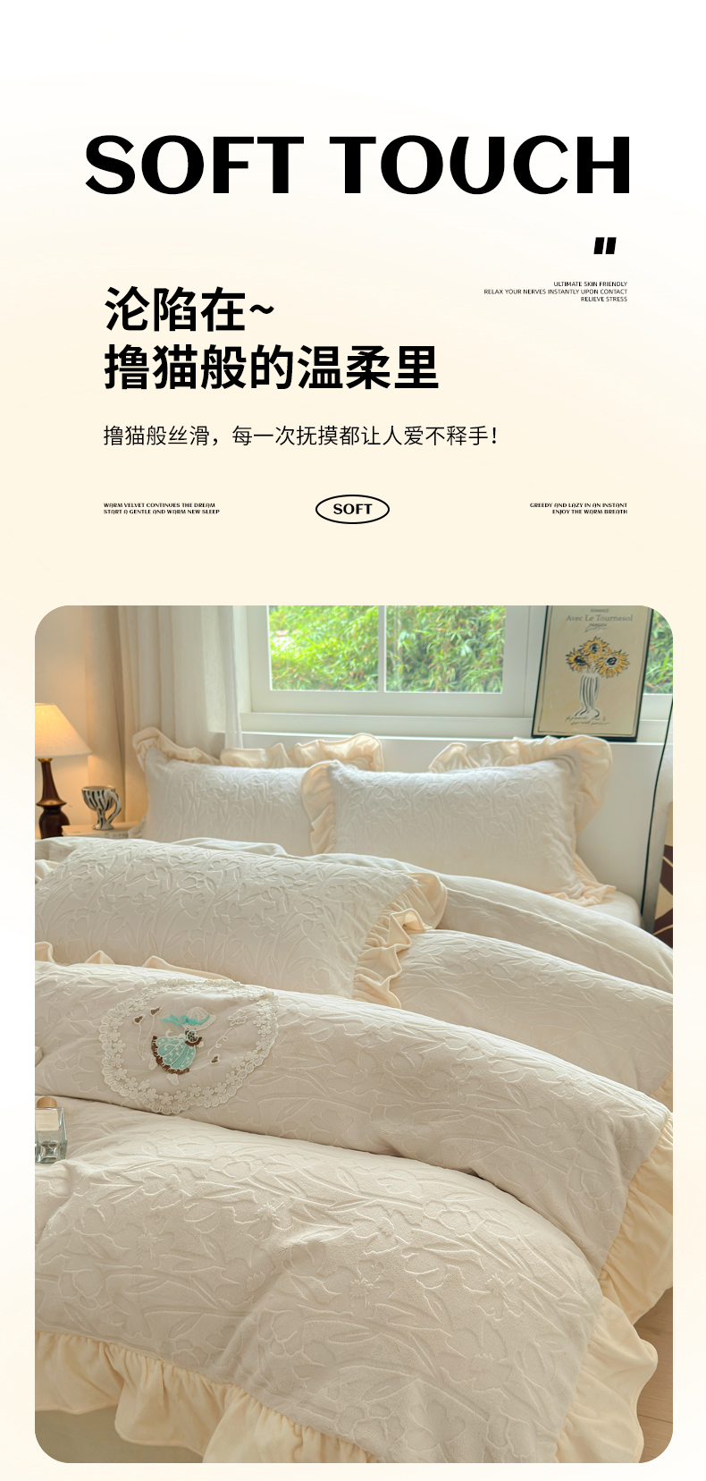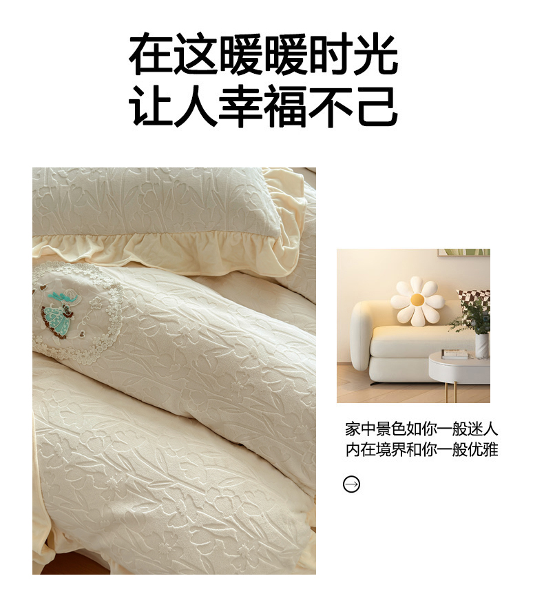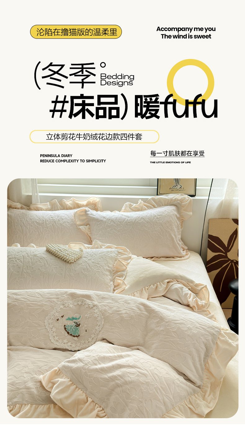 当前位置: 91家纺网 > 商品网购 > 床品套件 > 四件套 > 牛奶绒四件套 > 乐居家纺 2025新款蝴蝶花边款剪花提花牛奶绒四件套(含买家秀和质检报告) 花边款-一路生花-米咖