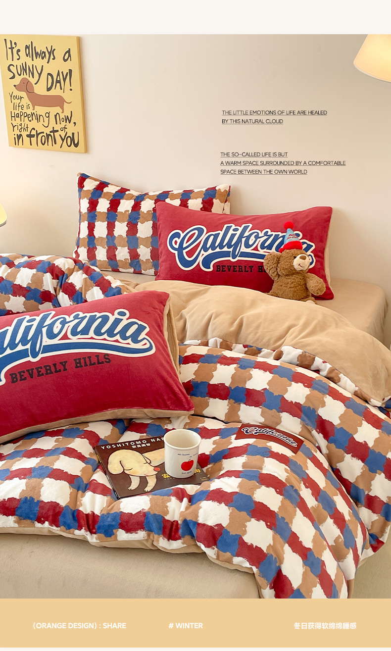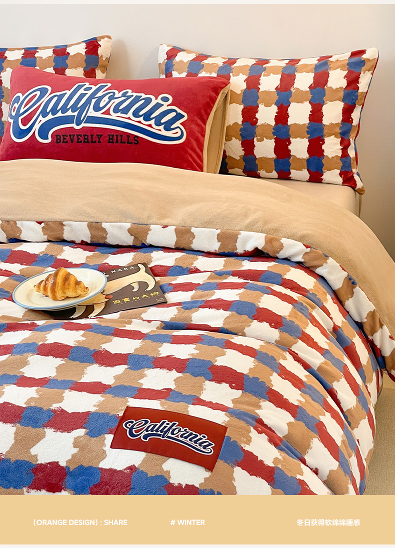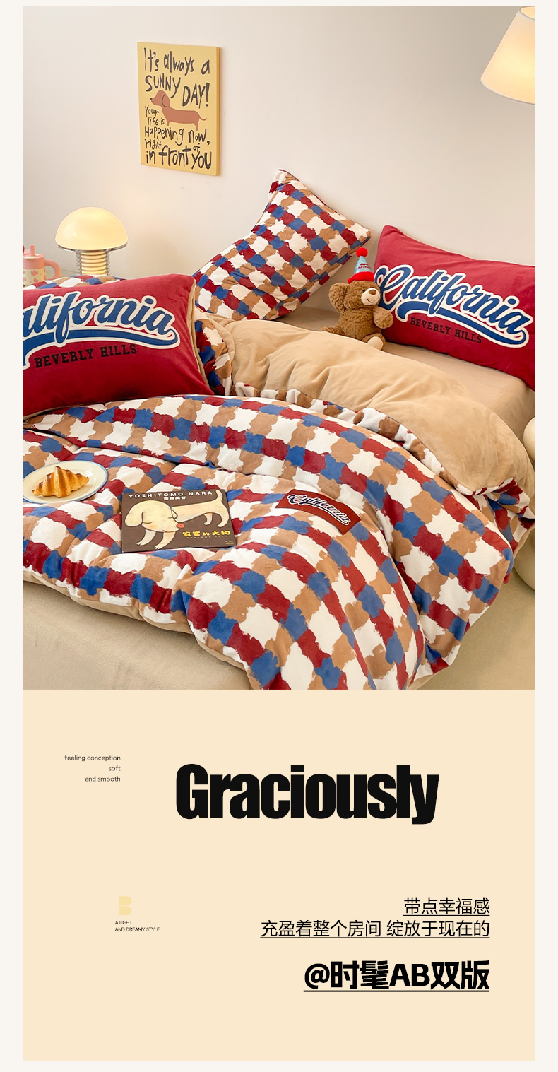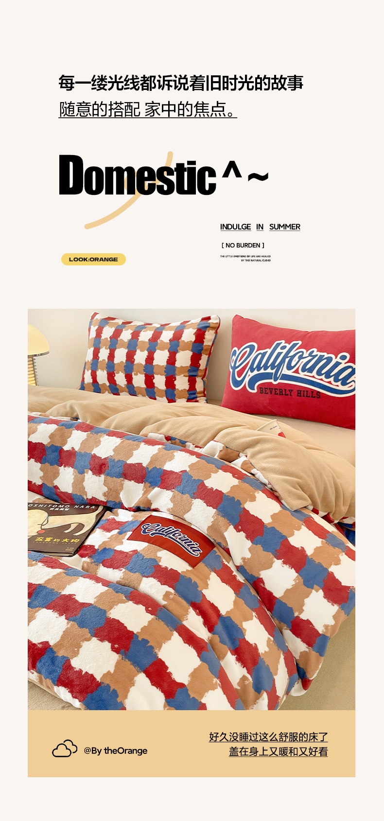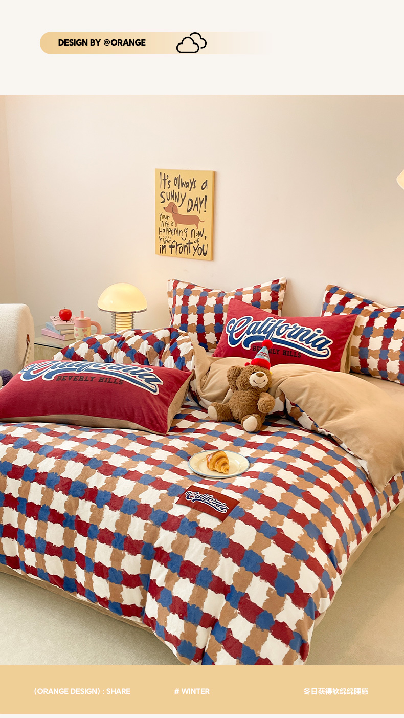 如一 2025新款美式复古风数码织标牛奶绒四件套 复古红