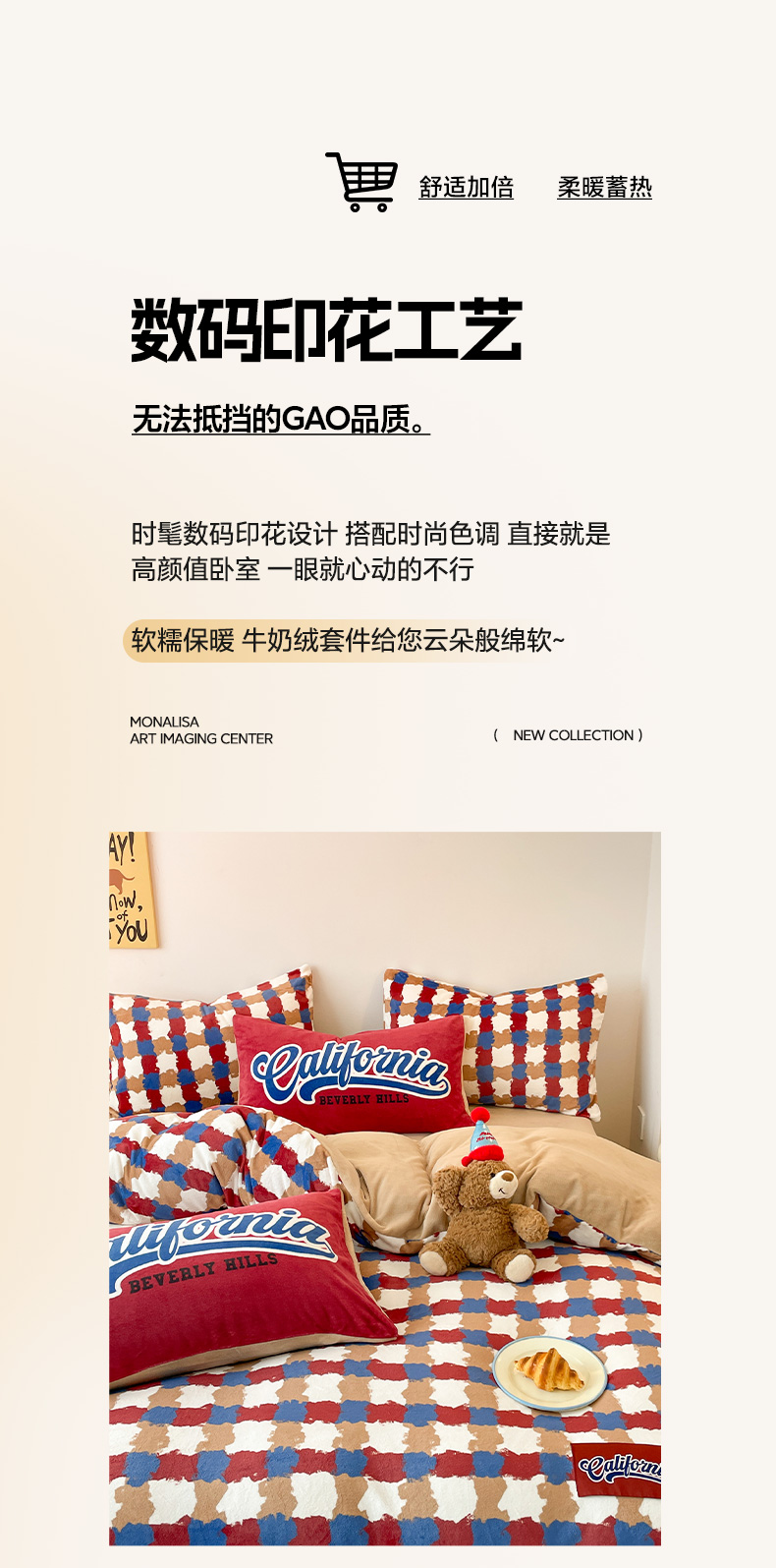 (总)如一 2025新款高克重大版数码印花牛奶绒四件套,毛毛狗,猫咪酱,俏皮狗,色彩猫,小熊仔,熊猫咖,游乐园,粉伙伴,拉兔咖,萌宠黄,萌宠绿,萌派对,围巾狗,线条狗,小粉喵,小花喵,小伙伴
