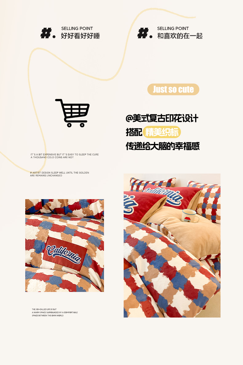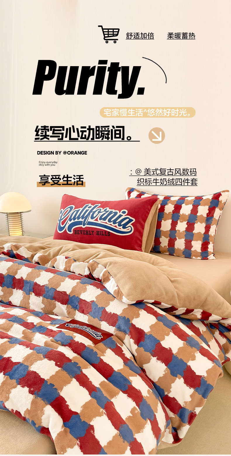 商品名称:如一 2025新款美式复古风数码织标牛奶绒四件套 复古红