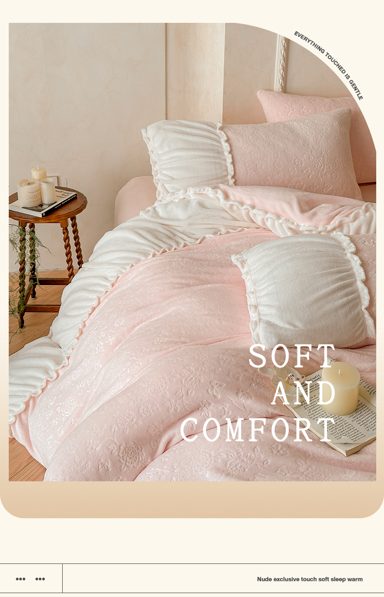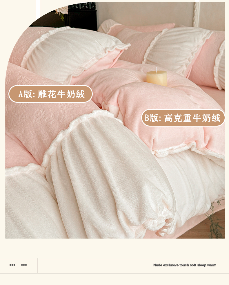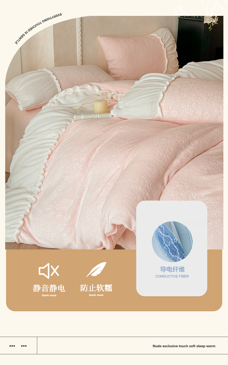 (总)逸尚阁 2025新款立体雕花牛奶绒花边款四件套--塔丽娜系列,塔丽娜-奶白粉,塔丽娜-玫瑰粉,塔丽娜-奶黄色,塔丽娜-浅玉色,塔丽娜-天空蓝