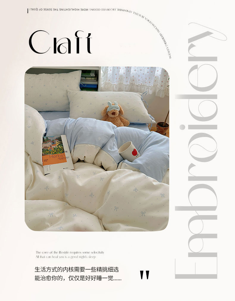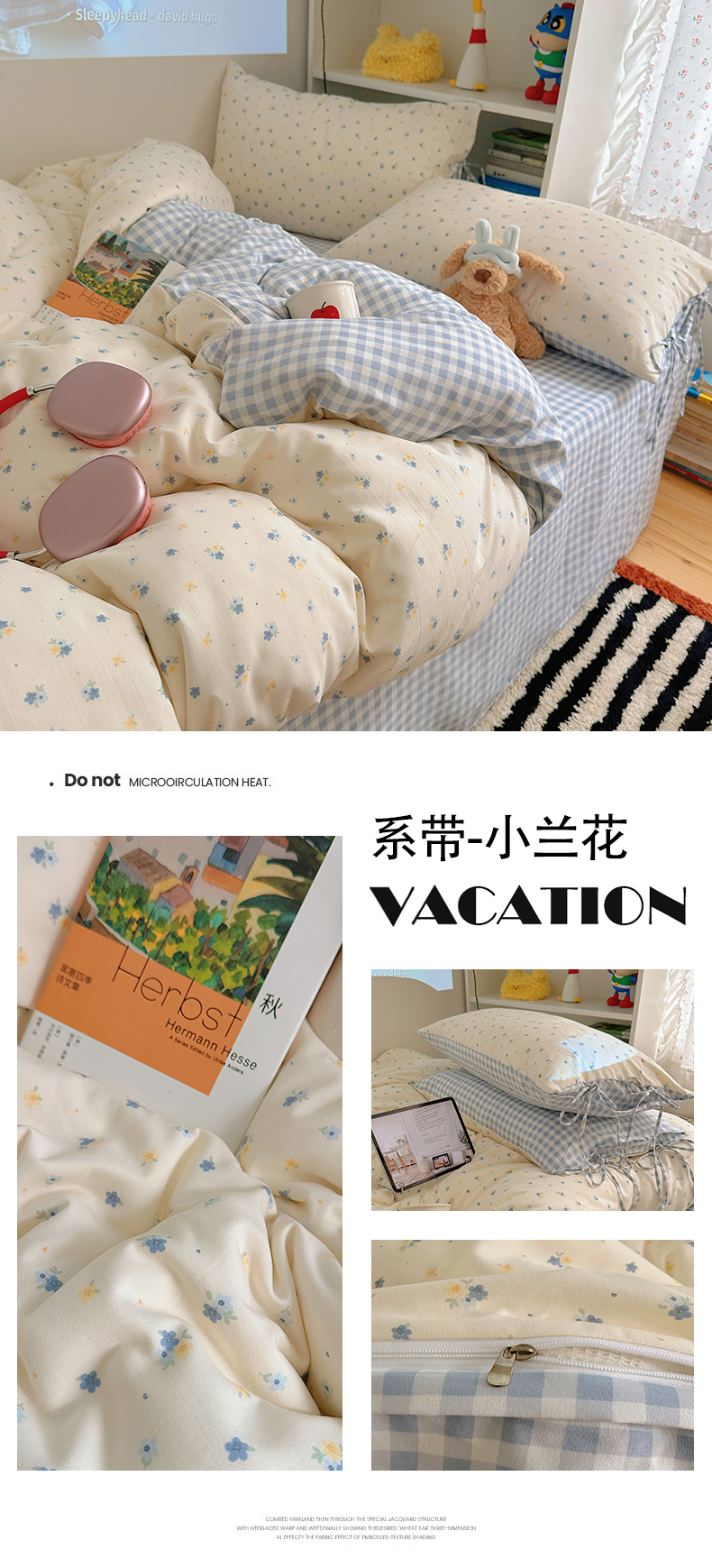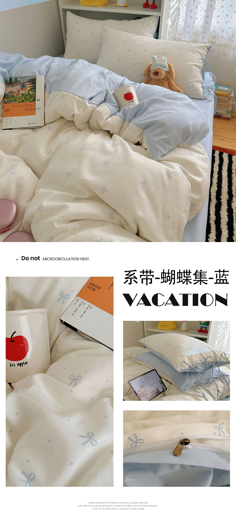 商品名称:初念 2025新款水洗棉系绳云朵棉四件套系列 系带-夏日铃兰