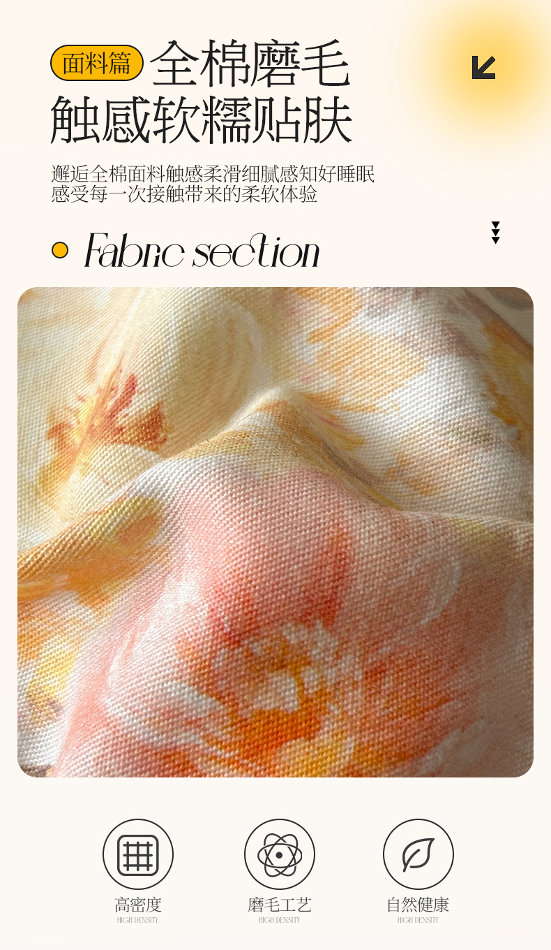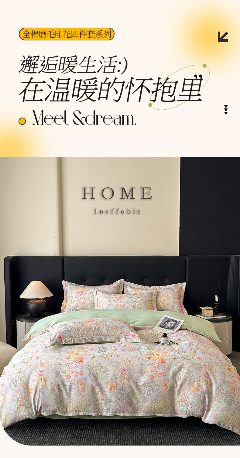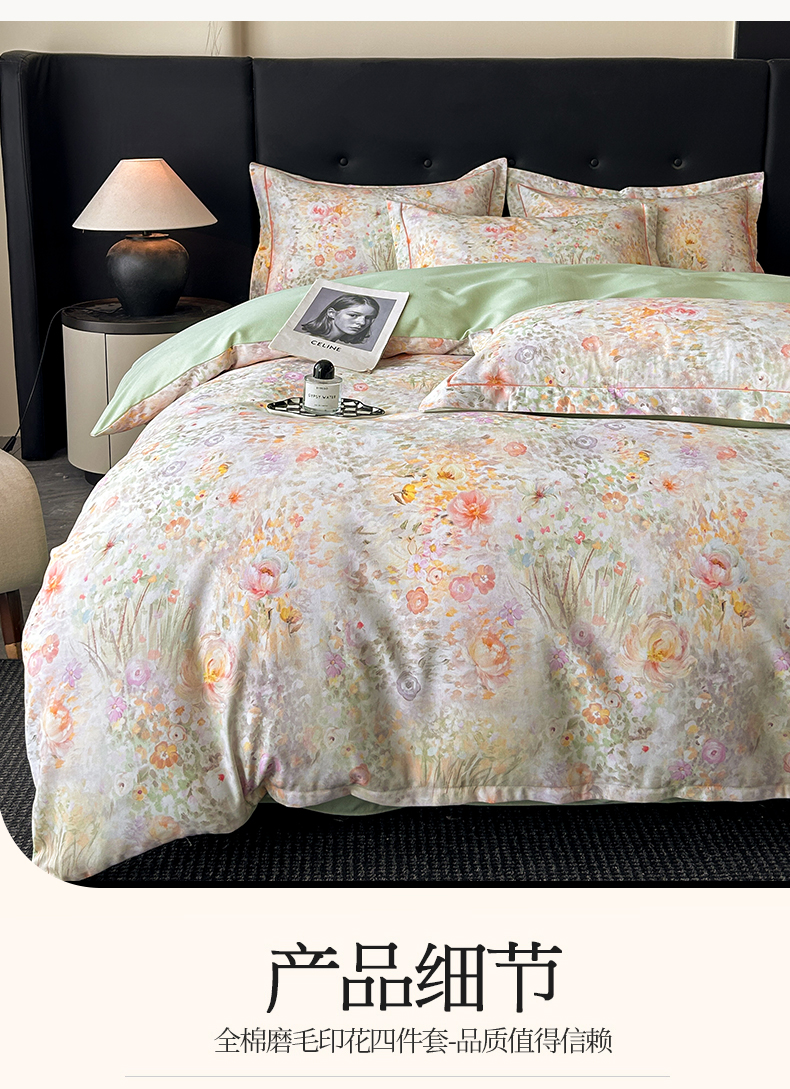 商品名称:玉海棠家纺 2025新款数码印花加厚全棉磨毛四件套 庄园午后
