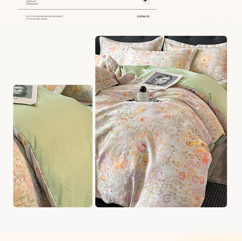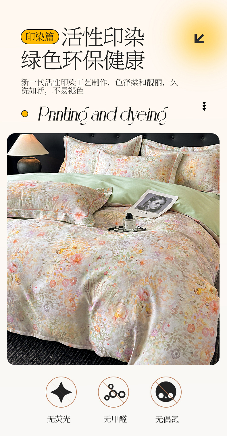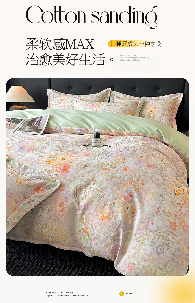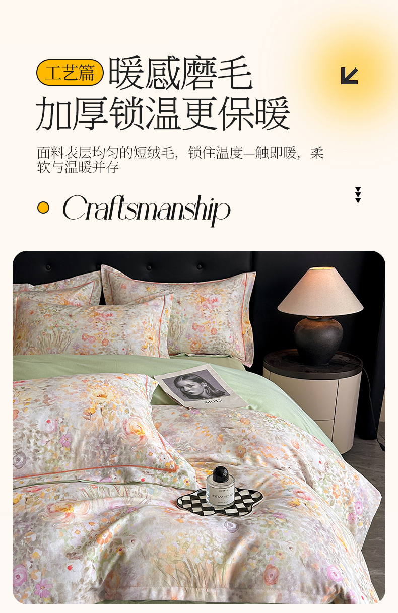 玉海棠家纺 2025新款数码印花加厚全棉磨毛四件套 庄园午后