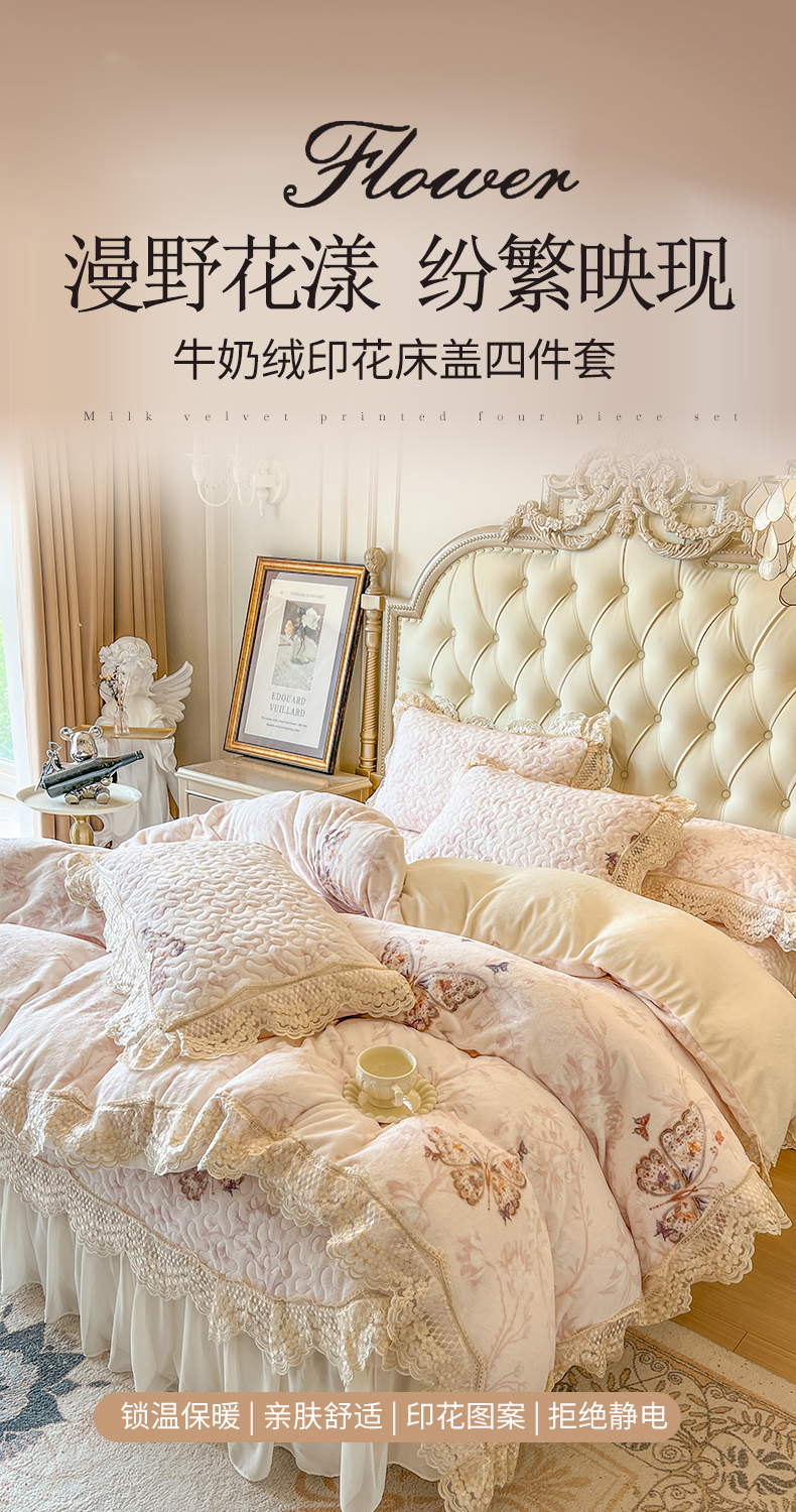 当前位置: 91家纺网 > 商品网购 > 床品套件 > 四件套 > 牛奶绒四件套 > (总)网红馆(ck家纺) 2025新款牛奶绒印花床盖款四件套