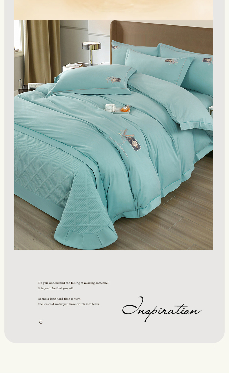 当前位置: 91家纺网 > 商品网购 > 床品套件 > 四件套 > 全棉普通四件套 > OL家纺 2025新款全棉磨毛刺绣床盖夹棉四件套-胜利之花系列 胜利之花-水波绿