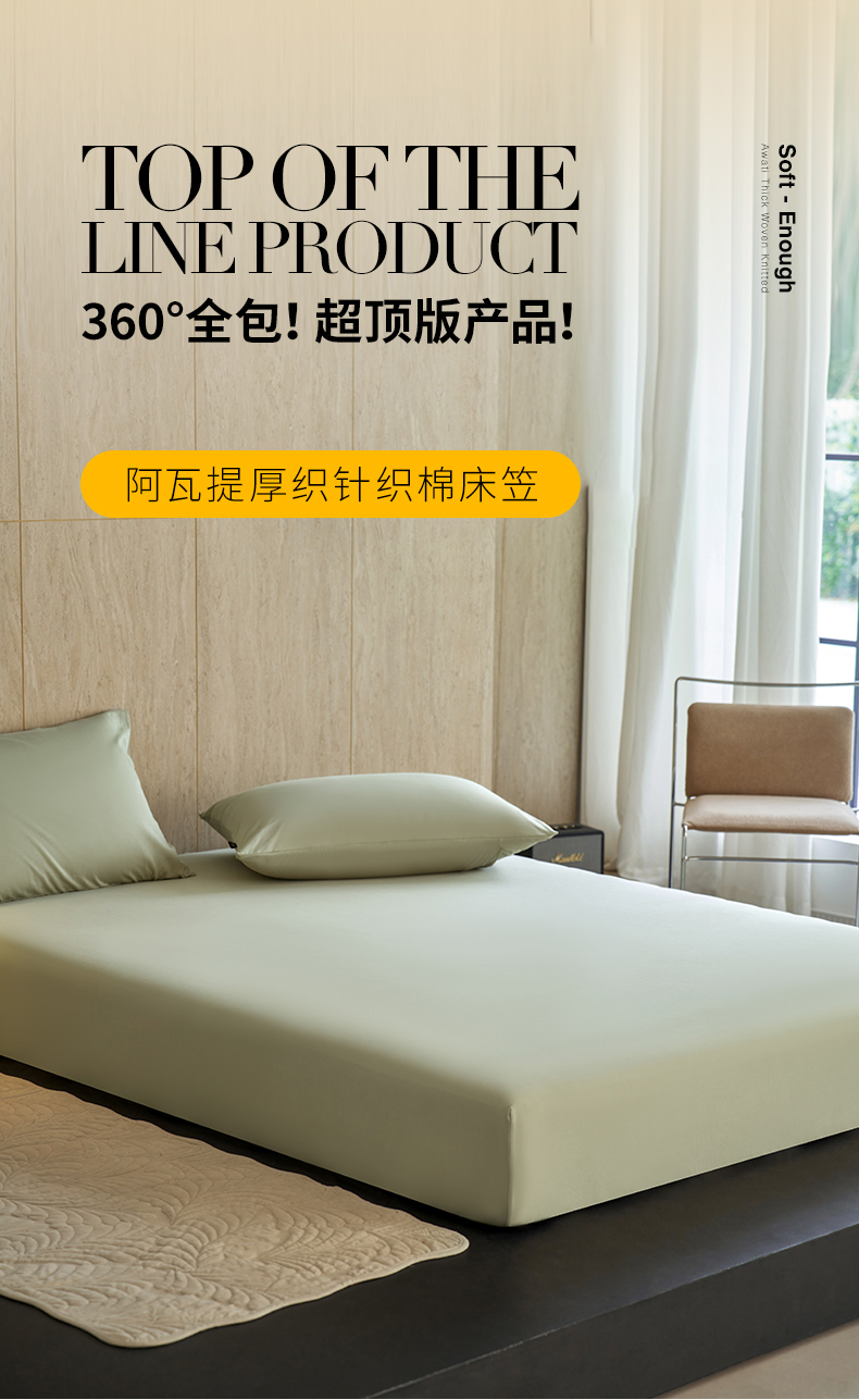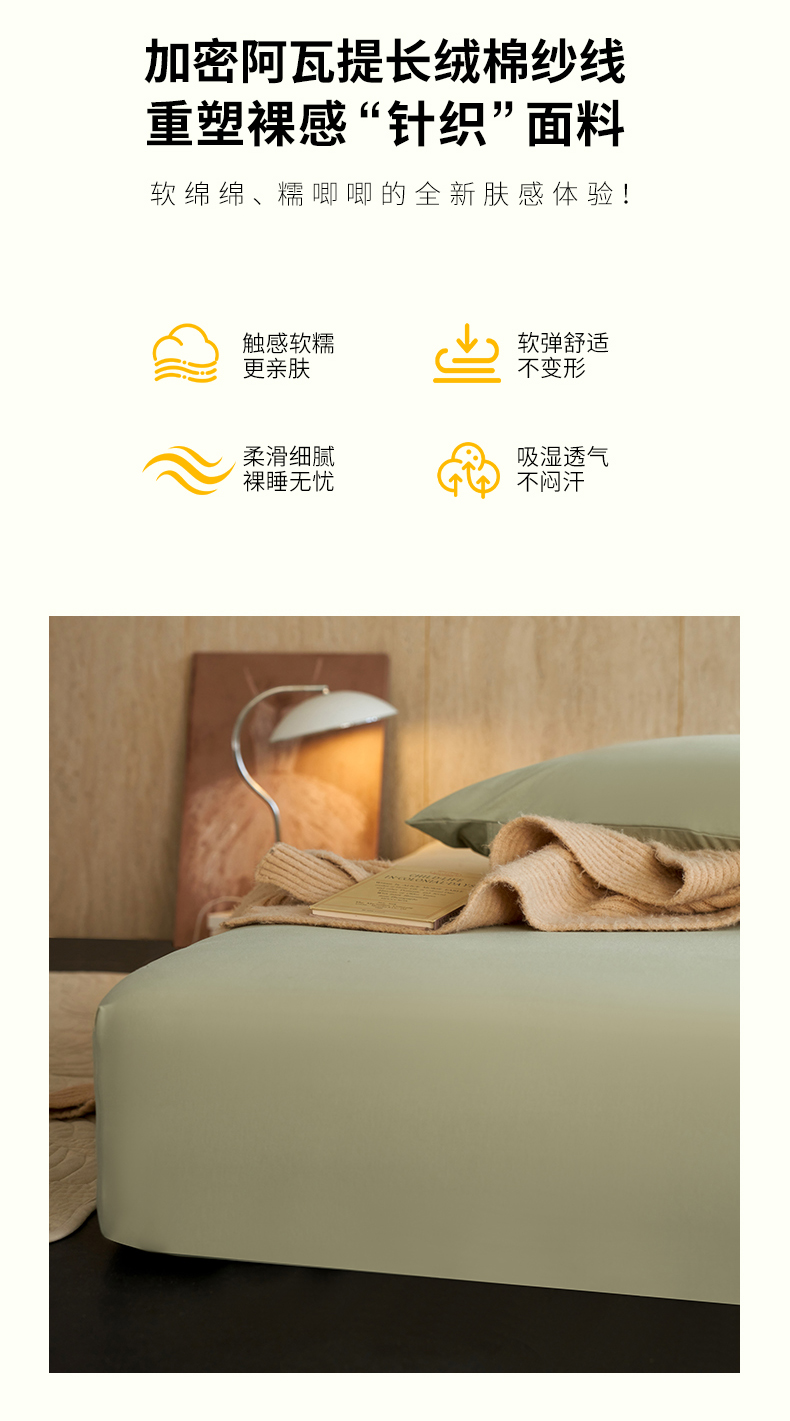 商品名称:丽笙被芯 2025新款亲肤舒适阿瓦提针织全棉纯棉床笠单品床笠单件床笠 春水绿