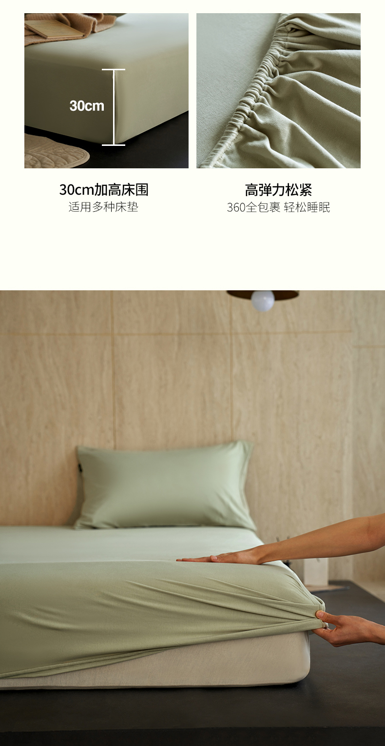 丽笙被芯 2025新款亲肤舒适阿瓦提针织全棉纯棉床笠单品床笠单件床笠 春水绿