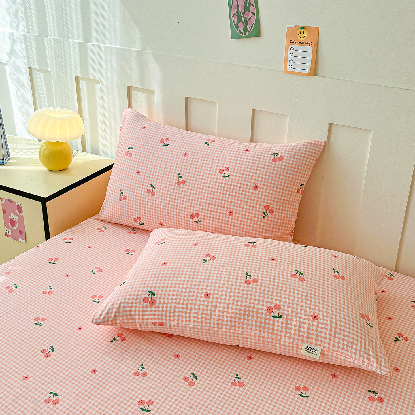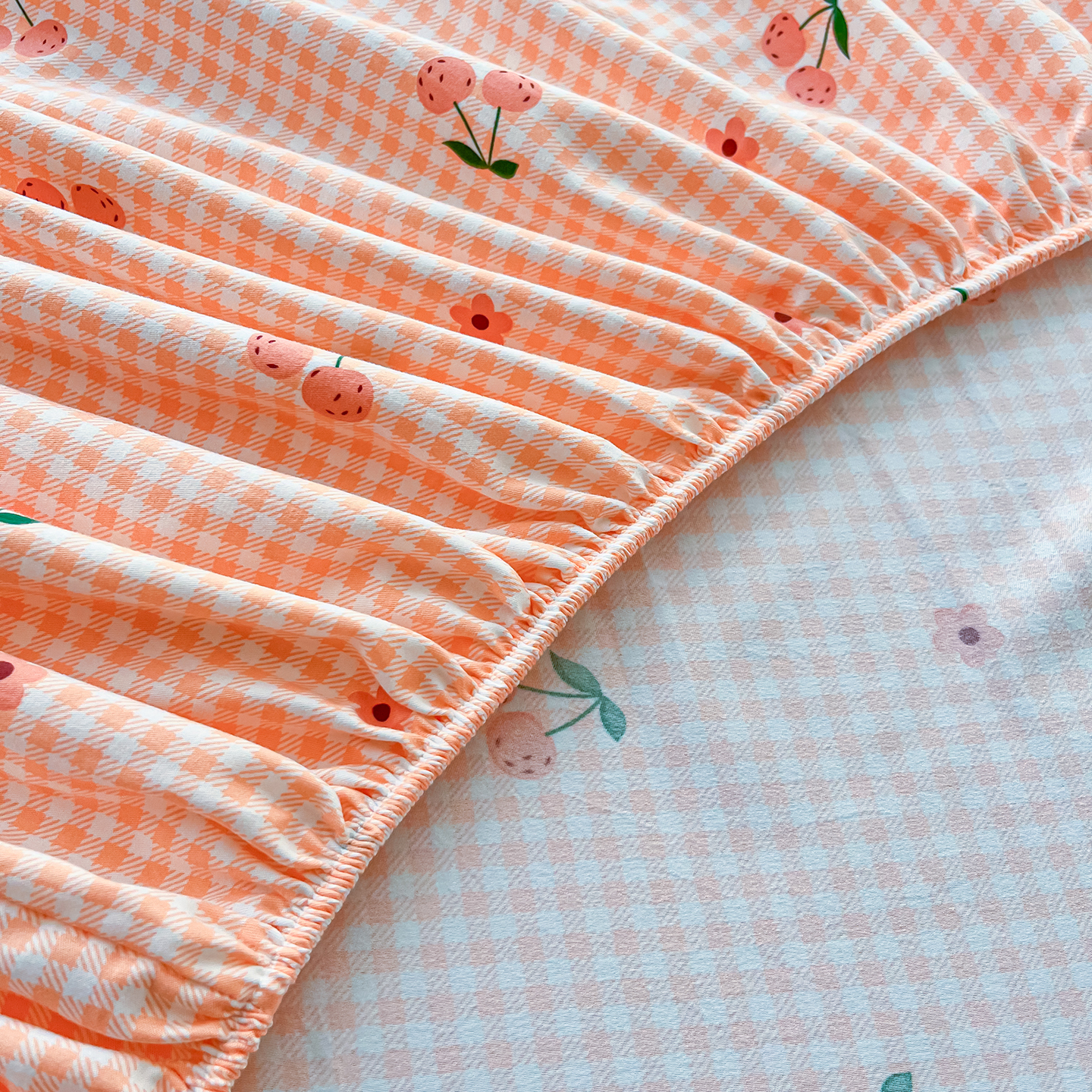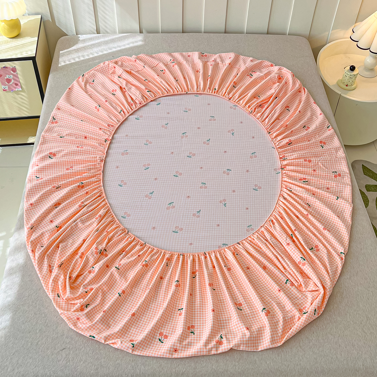 首爱家纺 2025新款木棉双层纱印花床笠 小樱桃