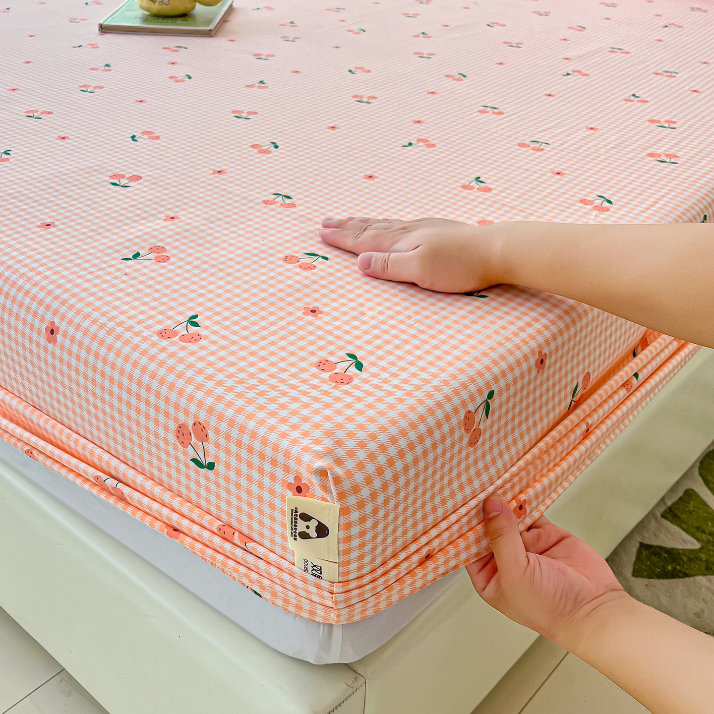 • 91家纺网 家纺一手货源 找家纺 首爱家纺 2025新款木棉双层纱印花床笠 小樱桃