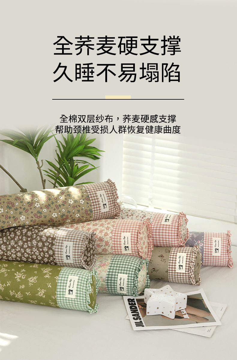 (总)明星枕业 2025新款棉麻荞麦枕高度可调节护颈椎枕头学生成人专用硬枕芯单枕芯,初秋花园 30x60cm单枕/只,梦想庄园 30x60cm单枕/只,组合图仅供展示 30x60cm单枕/只