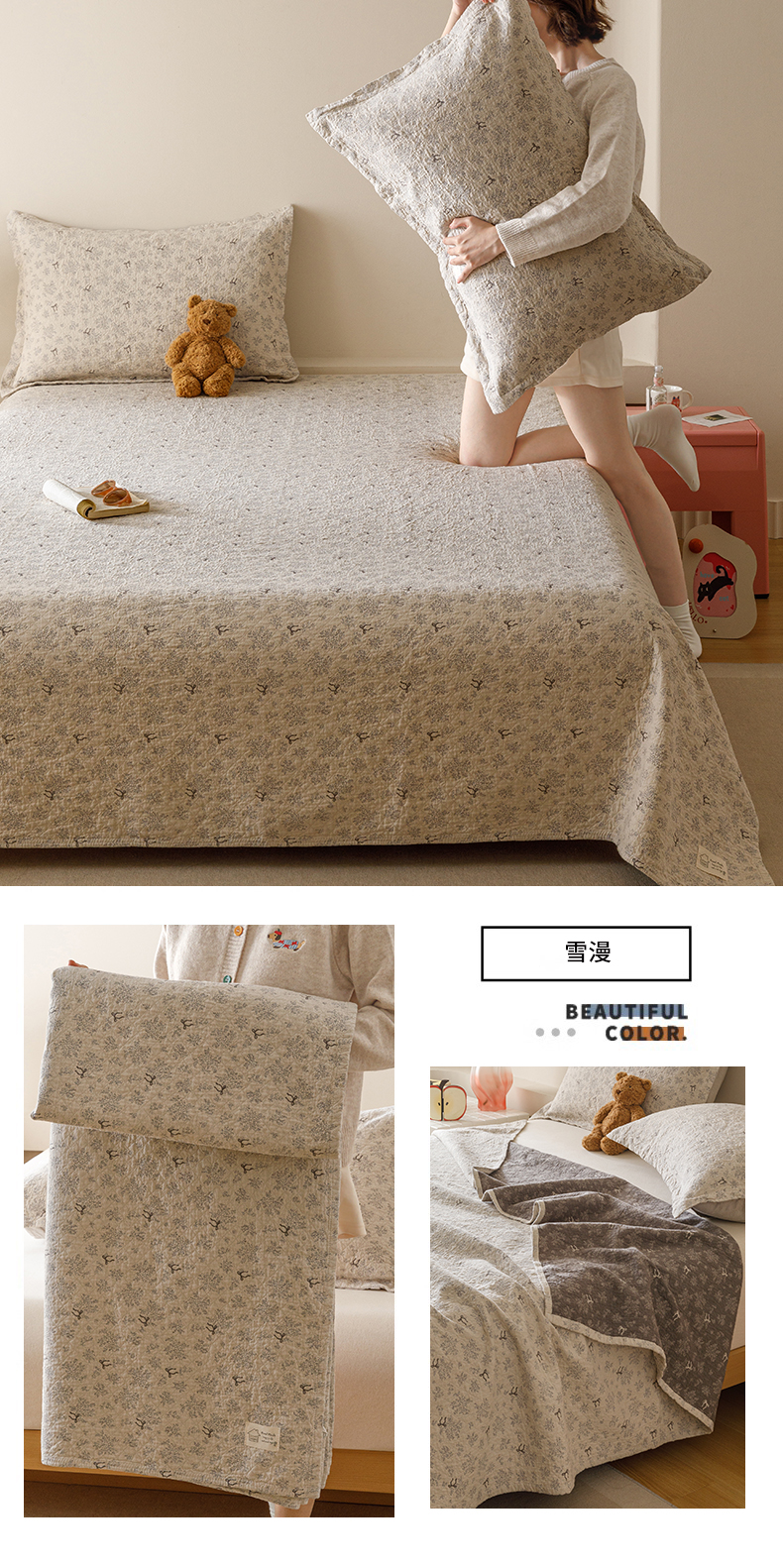 商品名称:麻依 2025新款安心棉床盖三件全棉四层纱布床单 雪漫