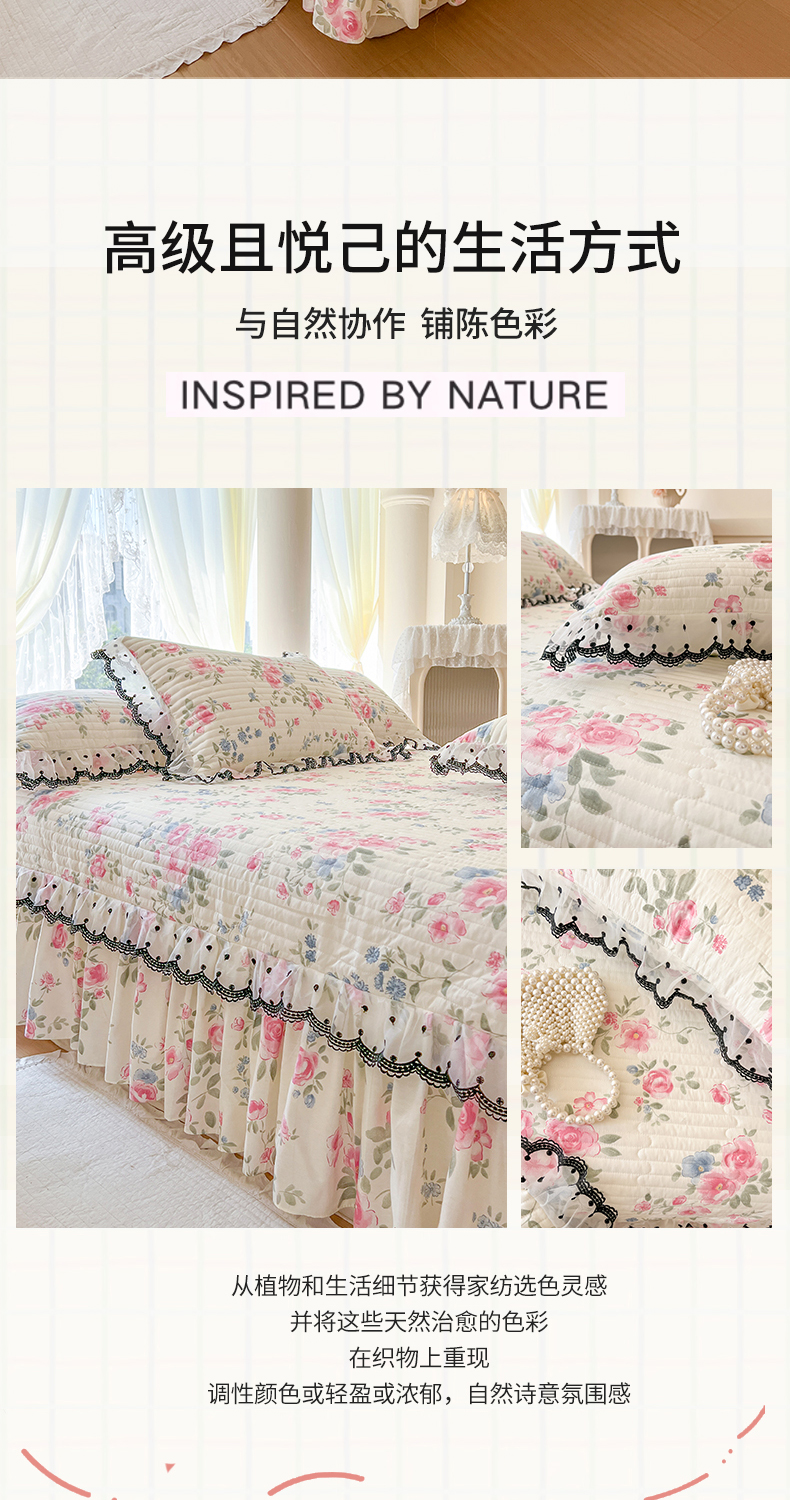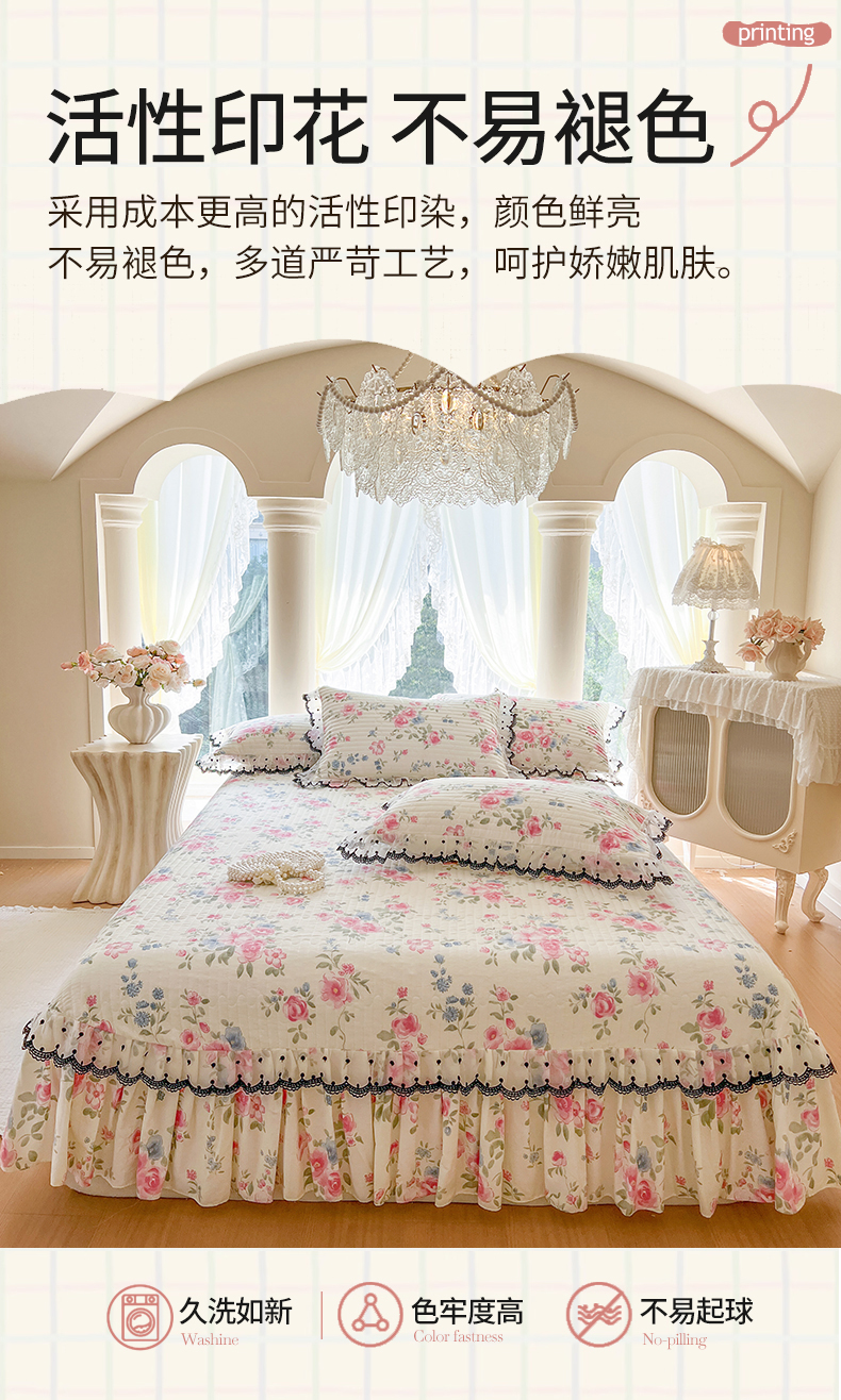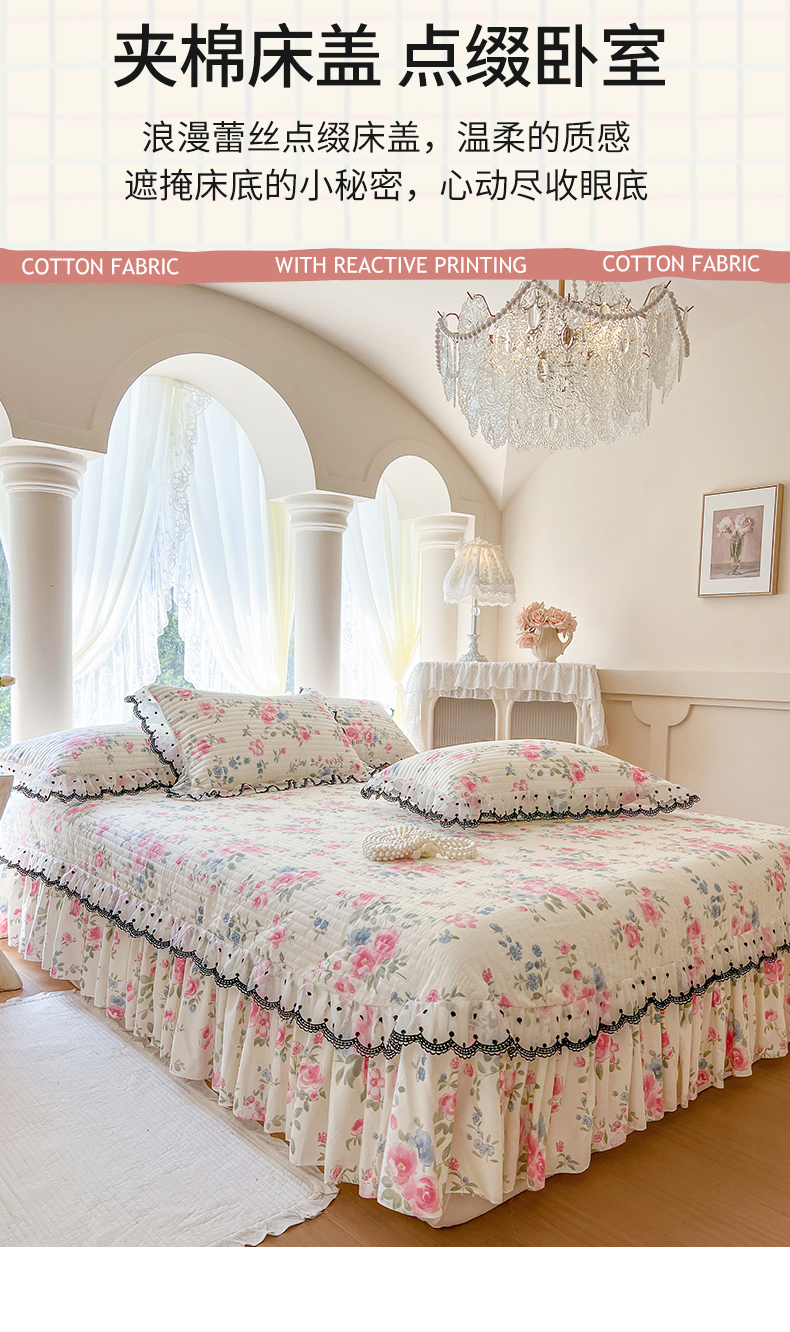 (总)网红馆(ck家纺) 2026新款全棉蕾丝花边床裙款床笠晨暮花间系列,绯红,粉色,麦绿,米色,浅紫,雾蓝