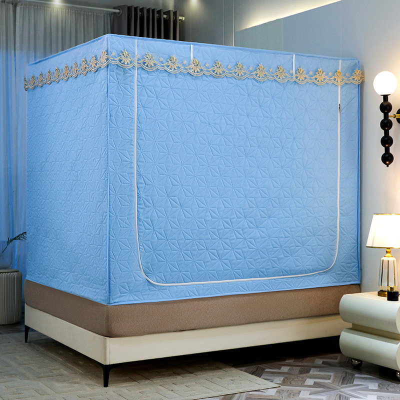 窝里暖 2025新款冬季保暖夹棉遮光帘蚊帐(五块夹棉) 蓝色,蓝色