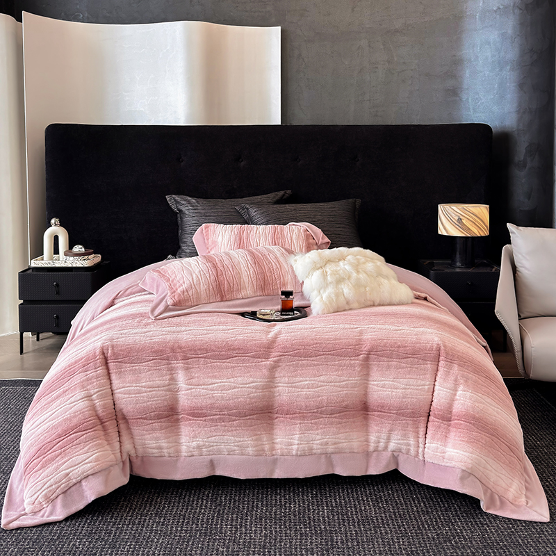 商品名称:若未家居 LOVEWE HOUSE 2025新款阿尔卑斯丹麦渐变山脉系风格貂四件套 海棠红