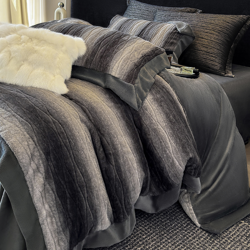 (总)若未家居 LOVEWE HOUSE 2025新款轻奢意式风仿真貂绒床盖四件套A版400克B版260克-北国雪乡,北国雪乡 暗夜灰,北国雪乡 咖,北国雪乡 驼