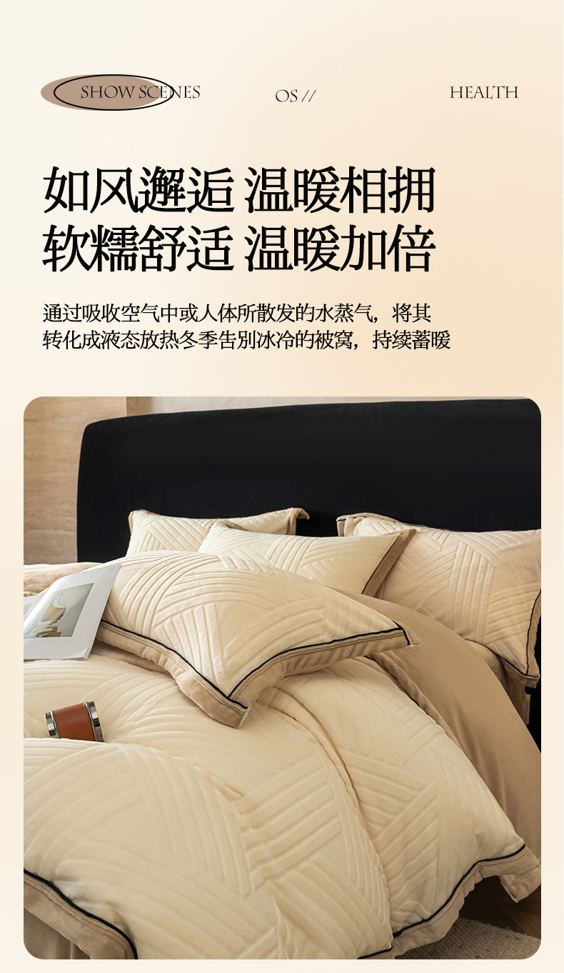 商品名称:满座家居 2025新款高克重牛奶绒雕花四件套-罗马假日 罗马假日-蜜粉