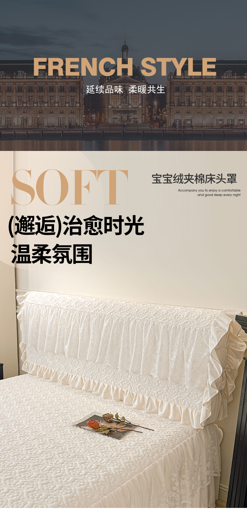 情恒家纺 2025新款宝宝绒夹棉单品床头罩床头罩单件 玫瑰盛典-云朵白