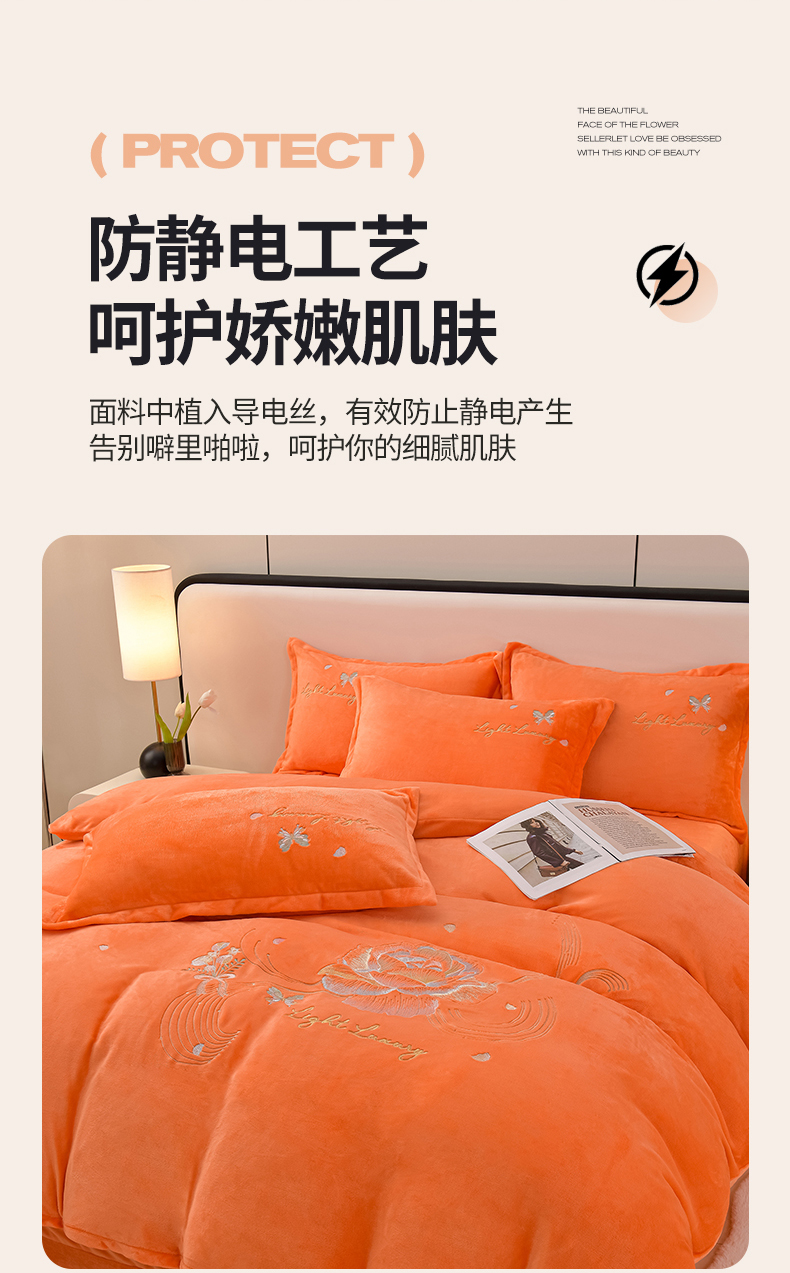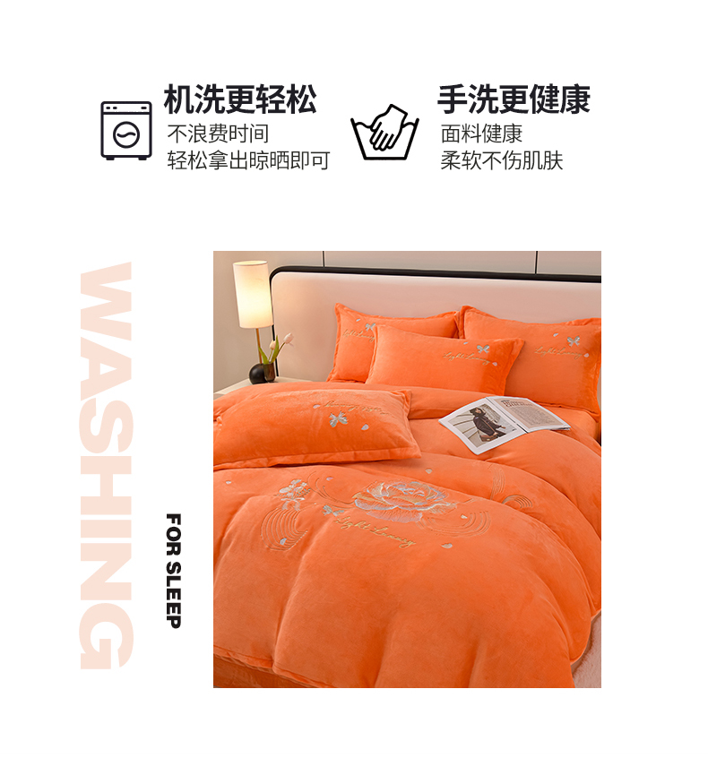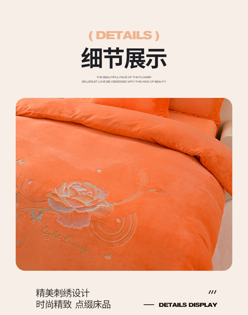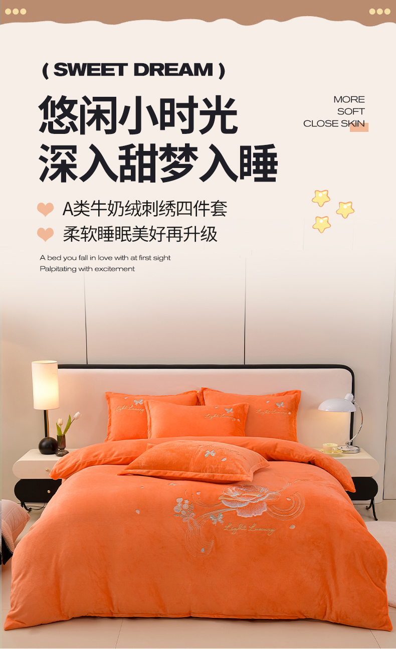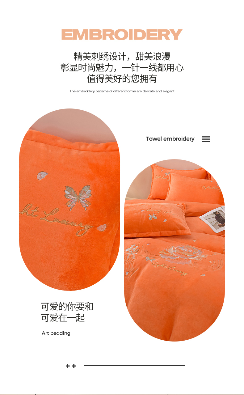 商品名称:绒小宣 2025新款A类牛奶绒刺绣四件套-蝶恋花 苏打橙