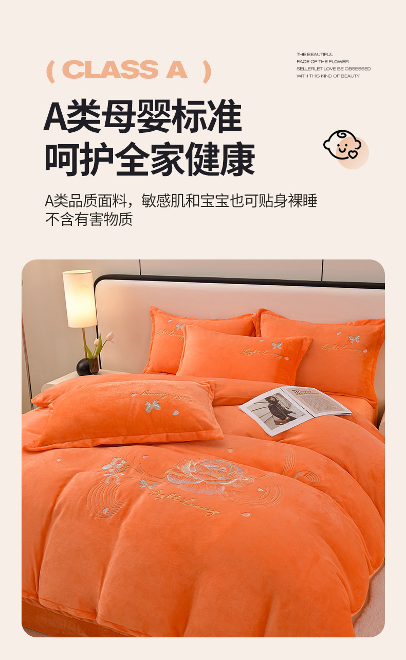 (总)绒小宣 2025新A类牛奶绒贴布绣四件套-花语,花语-浅粉,花语-宝石蓝,花语-豆沙色,花语-抹茶绿,花语-浅夏紫,花语-清新橙,花语-芍药粉,花语-天空兰