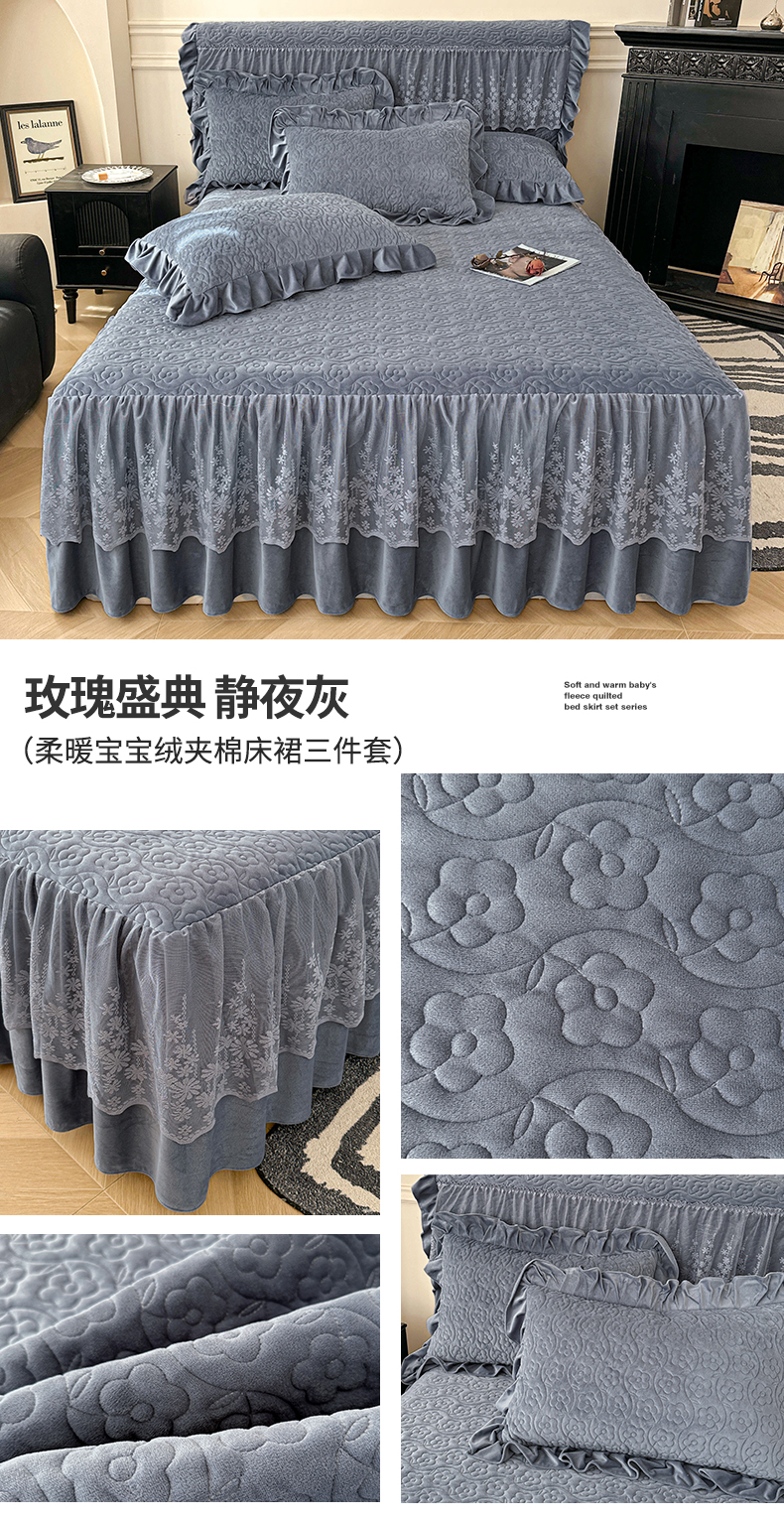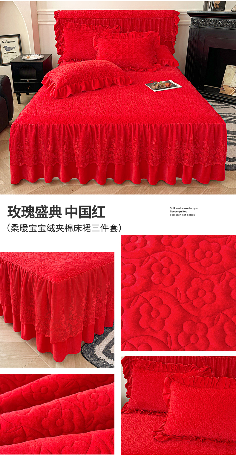 (总)情恒家纺 2025新款宝宝绒夹棉床裙三四五件套-玫瑰盛典,玫瑰盛典 香妃粉,玫瑰盛典 静夜灰,玫瑰盛典 明媚橙,玫瑰盛典 暖驼色,玫瑰盛典 深海蓝,玫瑰盛典 优雅紫,玫瑰盛典 云朵白,玫瑰盛典 中国红