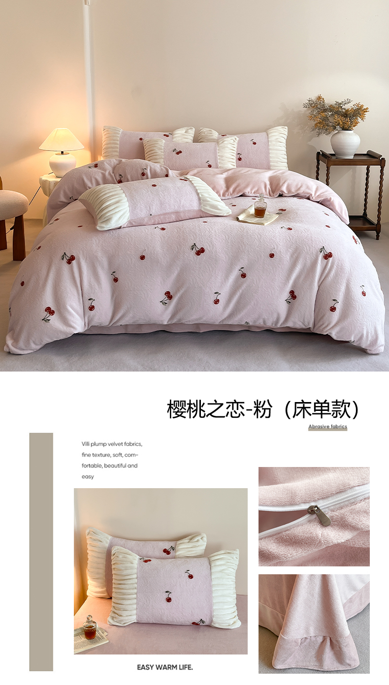 (总)子曰 2025新款浮雕轻法式复古ins小清新风雕花牛奶绒四件套,花颜-棕,花颜-卡其,花韵-兰,梦里蝴蝶-卡其,水墨画-绿,樱桃之恋-粉,樱桃之恋-兰,醉蝴蝶-粉,醉蝴蝶-灰,醉蝴蝶-咖