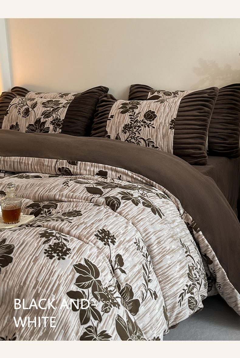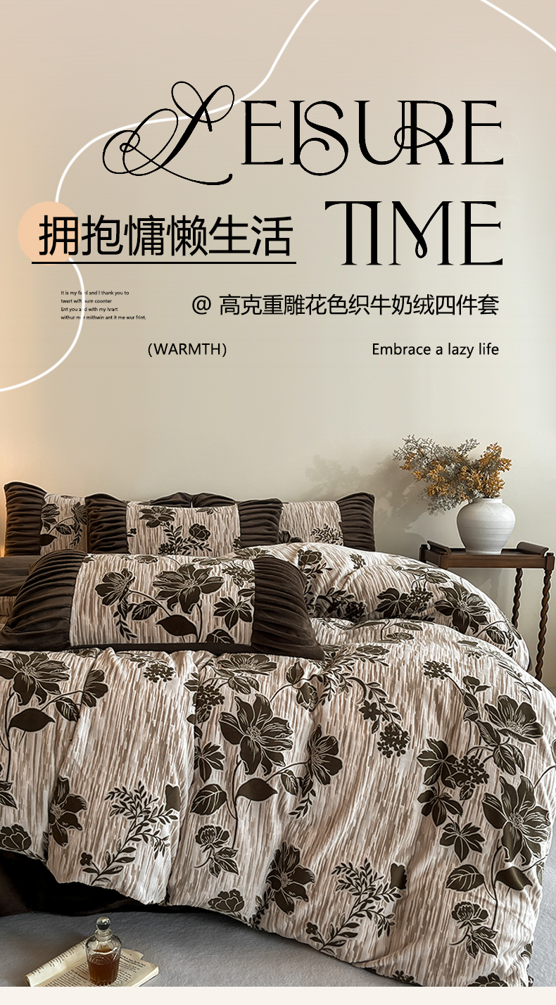 (总)子曰 2025新款雕花加厚牛奶绒宽边工艺款四件套-小香风,小香风-咖,小香风-粉,小香风-绿,小香风-米白,小香风-紫