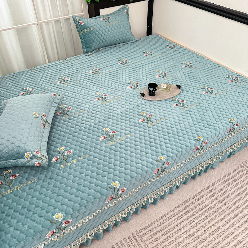 • 91家纺网 家纺一手货源 找家纺 手艺人家纺 2025新款绗缝绣花HLK02-03炕床盖 HLK03绿