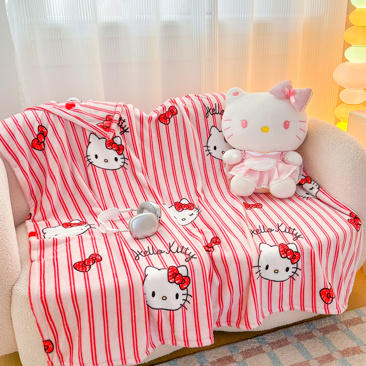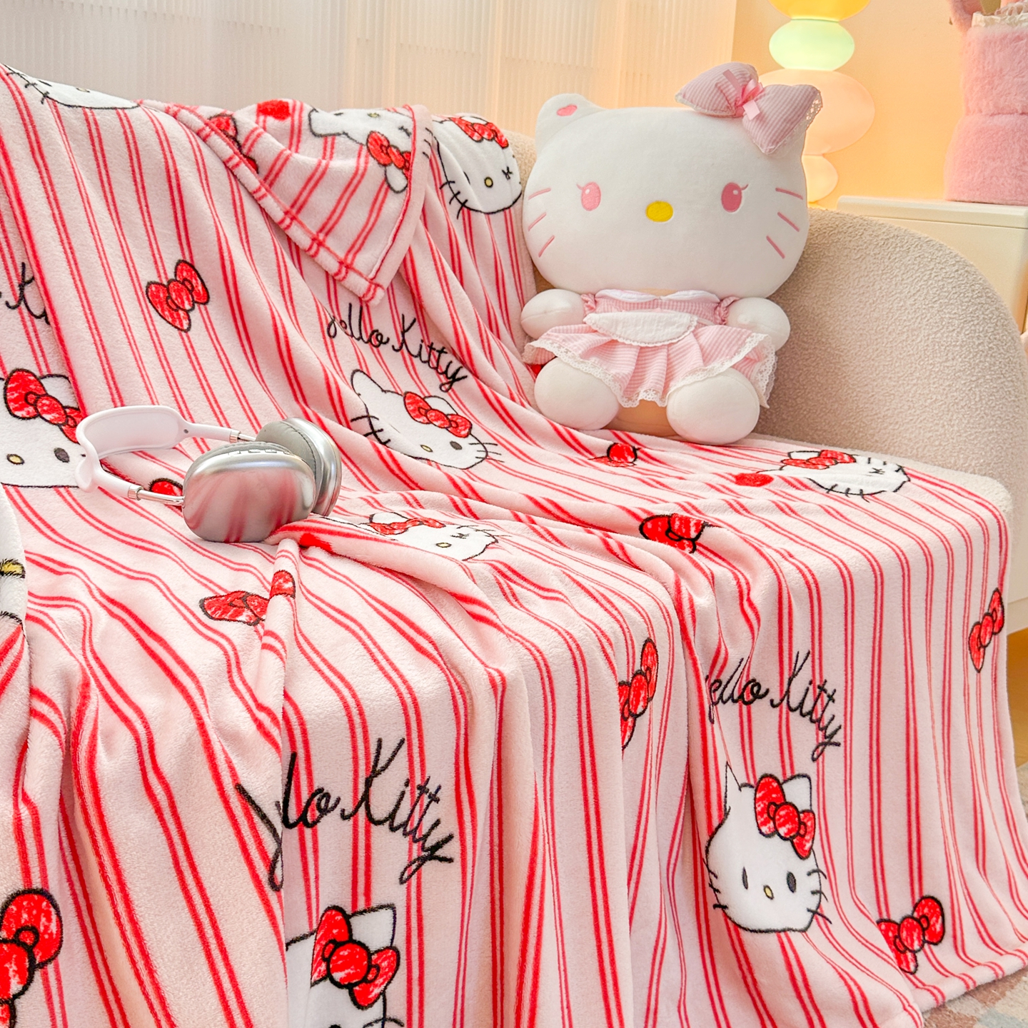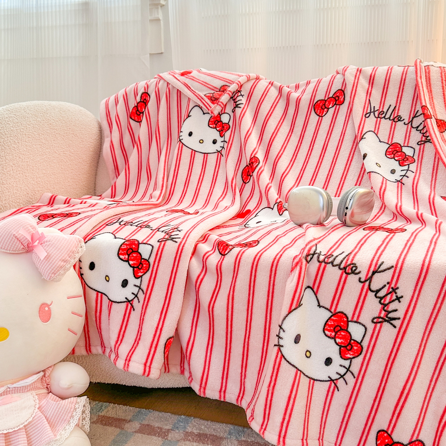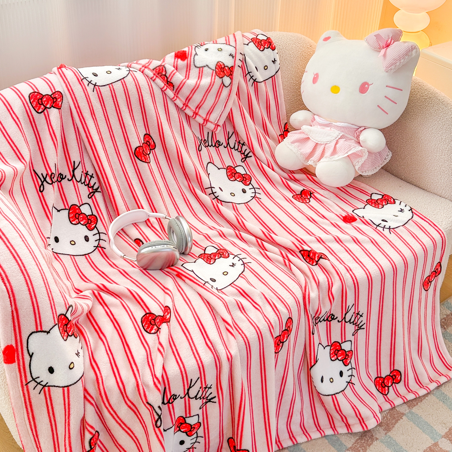 商品名称:花满路 2025新款亲肤舒适卡通系列毛毯 线条kitty