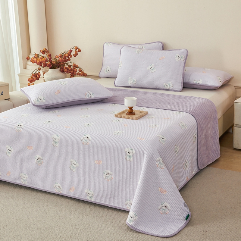 • 91家纺网 家纺一手货源 找家纺 莎果家纺 2025冬季新款热推冬季必备寒冷的冬季有了它便多了些温暖婴儿绒+全棉床盖三件套 绒绒小狗