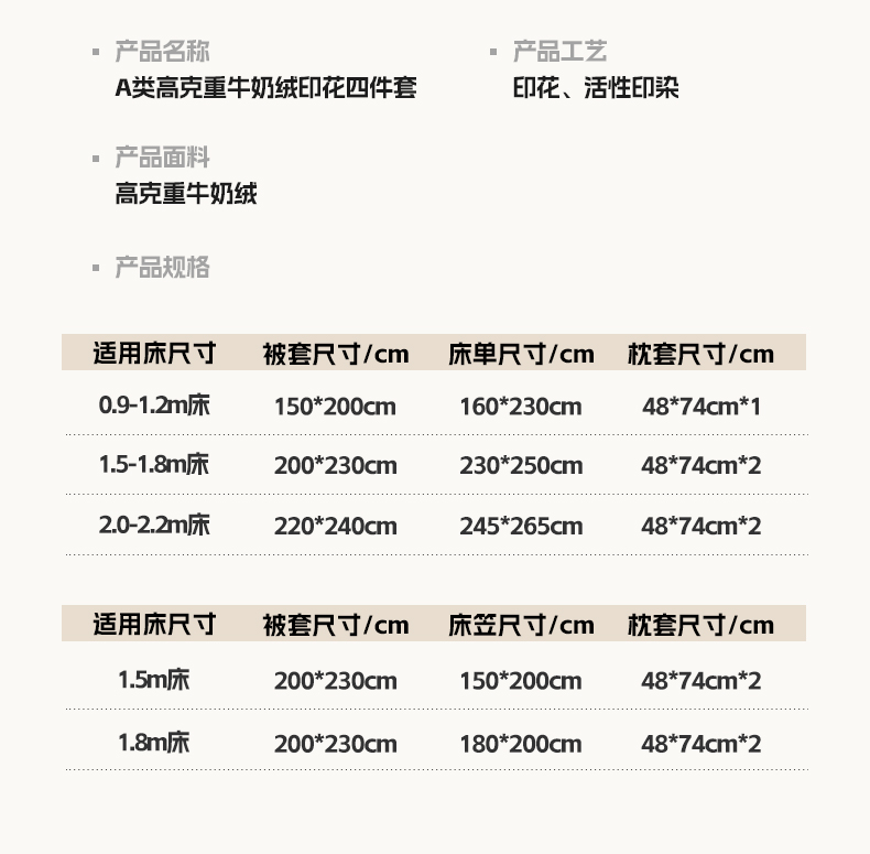 【床笠款】1.5四件套-被套200x230 | ¥95.00 |