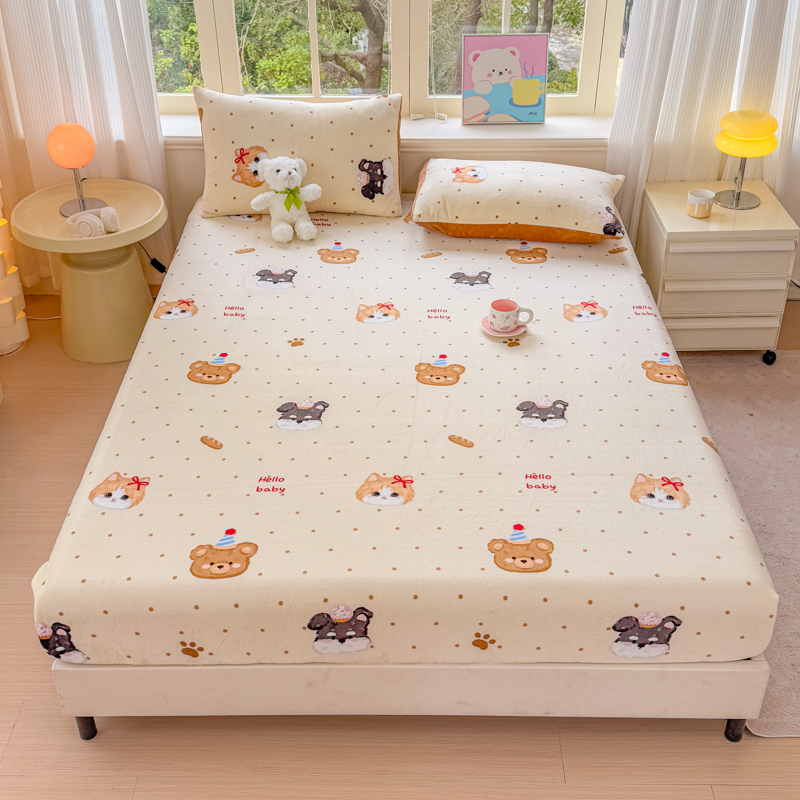 梦舒阳家纺 2026新品牛奶绒单床笠单被套床笠三件套软fufu牛奶绒单品 咔咔小熊【绒床笠】