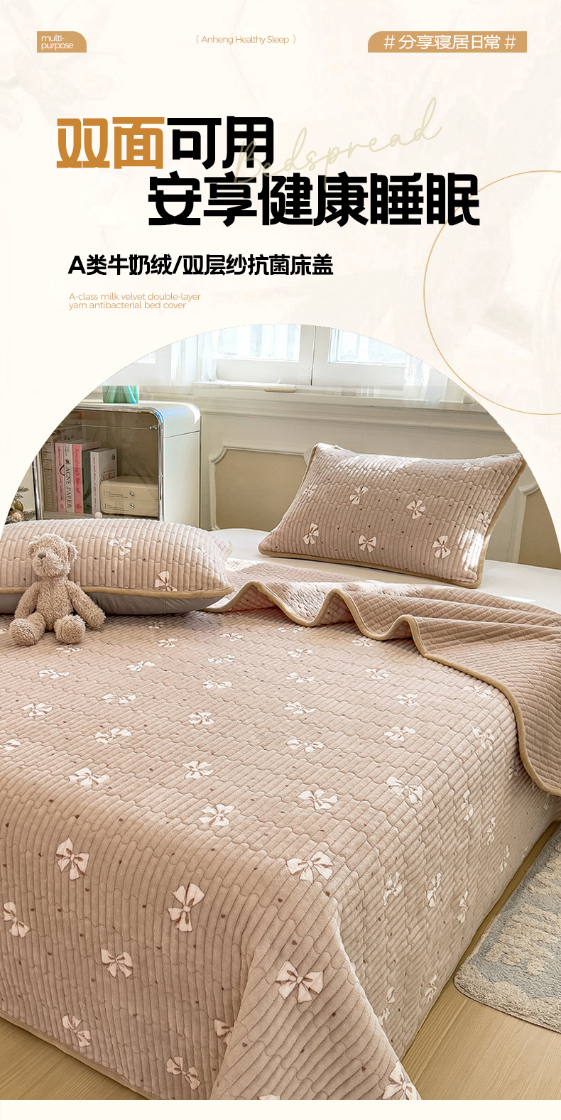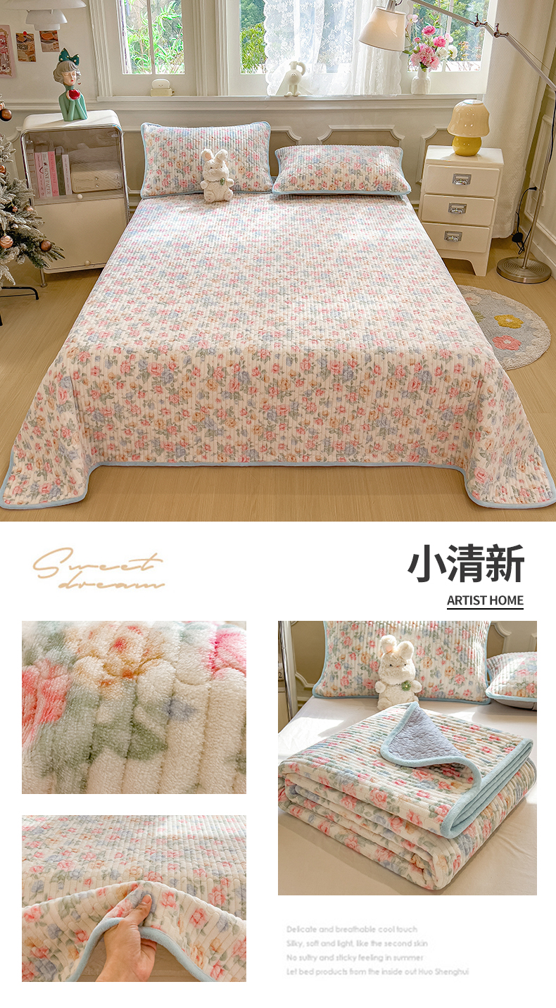 商品名称:布卢姆床垫 2025新款双面用抗菌牛奶绒床盖 床盖单件 蝴蝶结