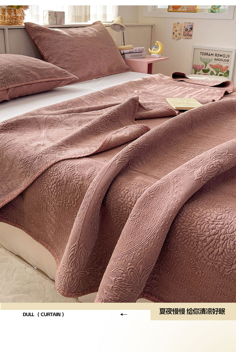 (总)源舜家纺 2025新款无弹针织绣花小清新床盖夏被四件套,粉色,灰色,蓝色,绿色,玉色,紫色