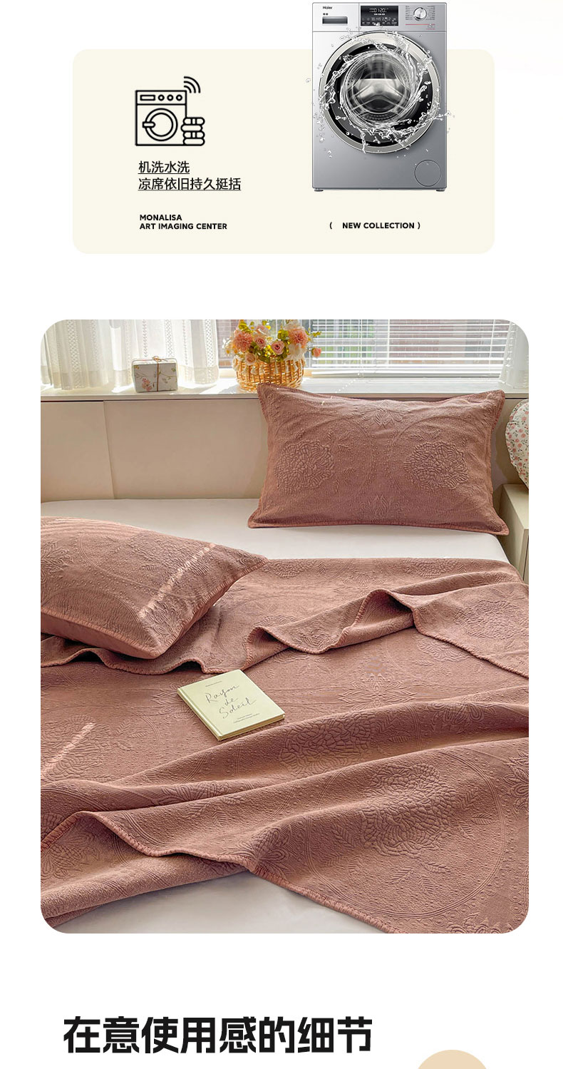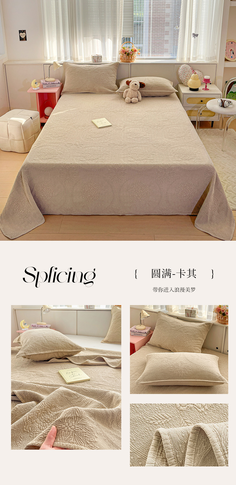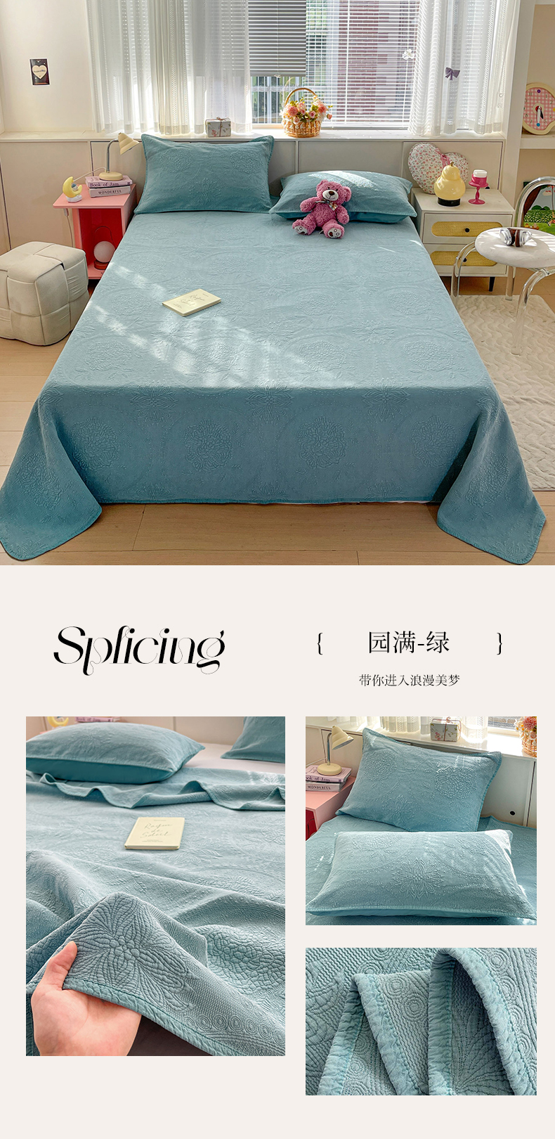 (总)源舜家纺 2025新款色织棉简约韩系花边床盖三件套,简约灰,简约粉,简约绿,简约驼,简约蓝