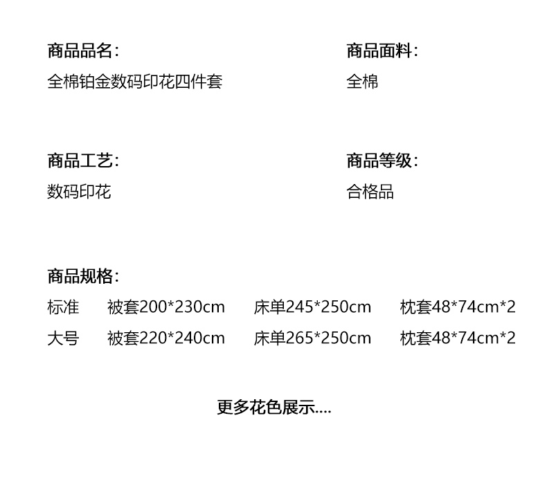 商品名称:(总)优姿家纺 2026新款全棉40匹马棉数码印花四件套