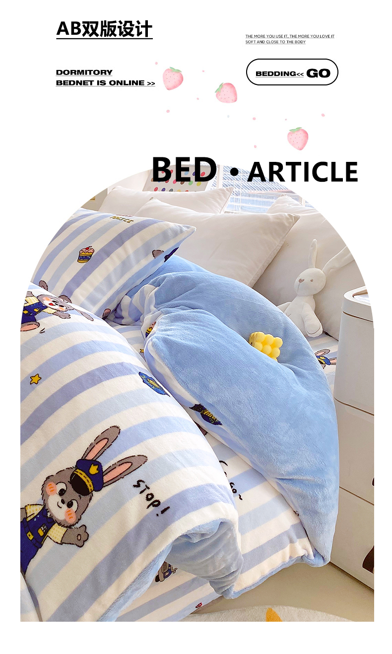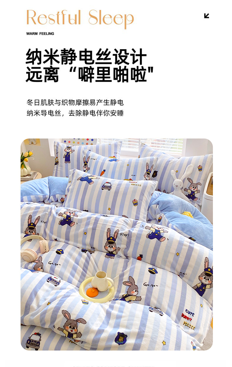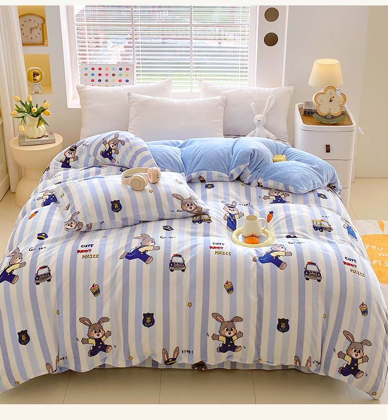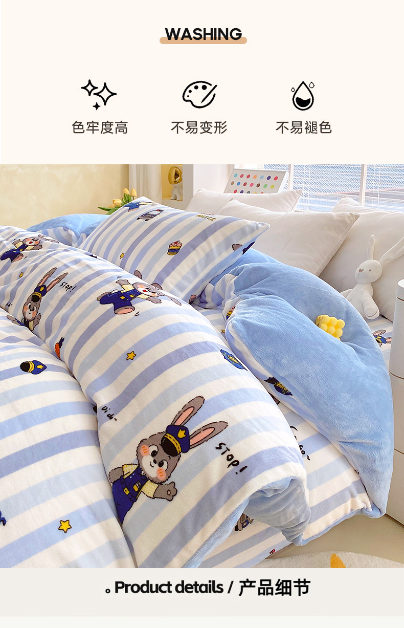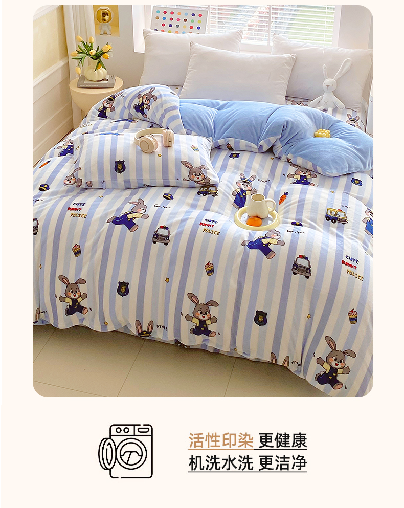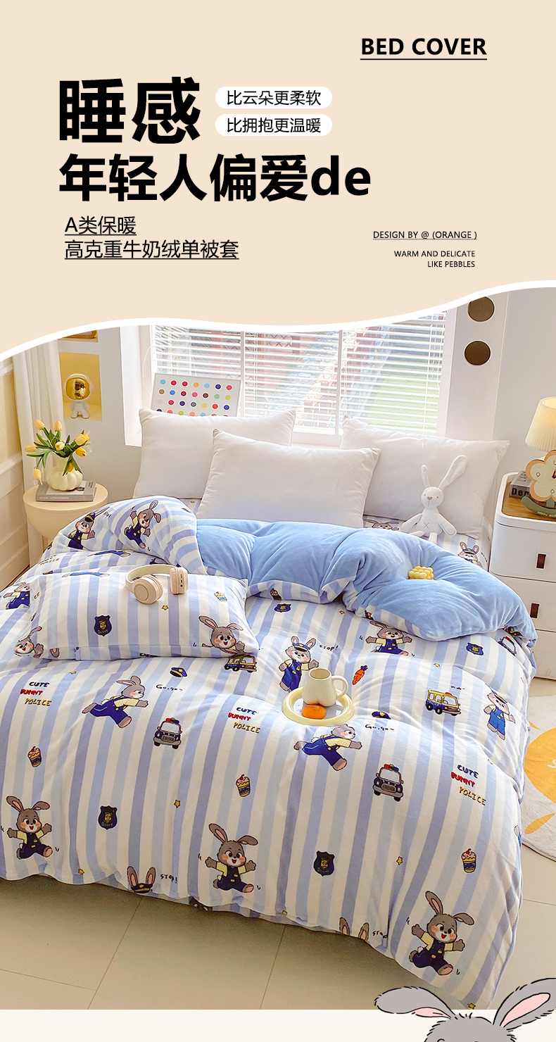 • 91家纺网 家纺一手货源 找家纺 金鑫汇家纺 2025年加厚高克重A类牛奶绒单被套 被套单件 兔子警官