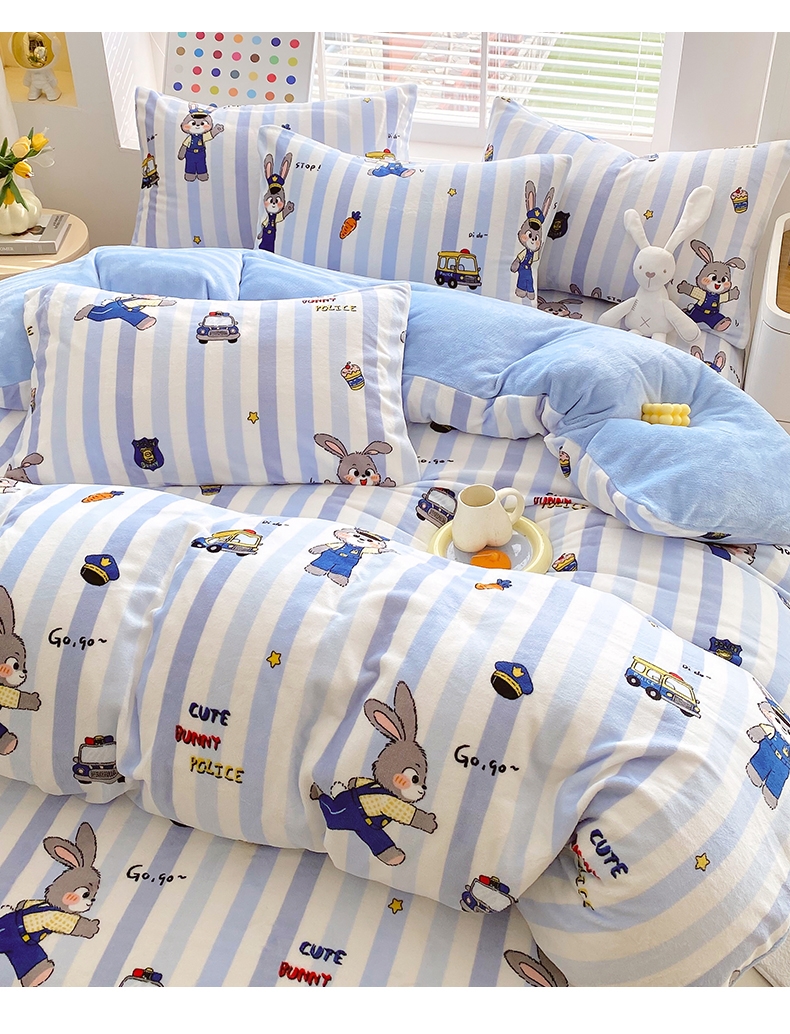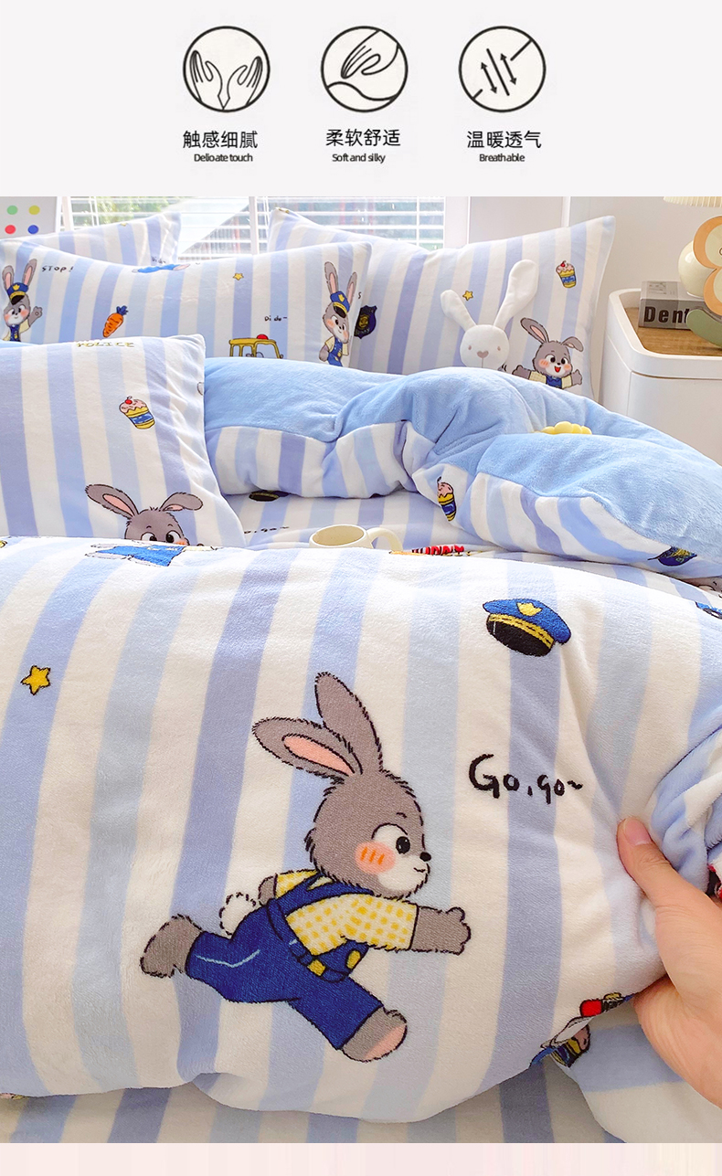 金鑫汇家纺 2025年加厚高克重A类牛奶绒单被套 被套单件 兔子警官