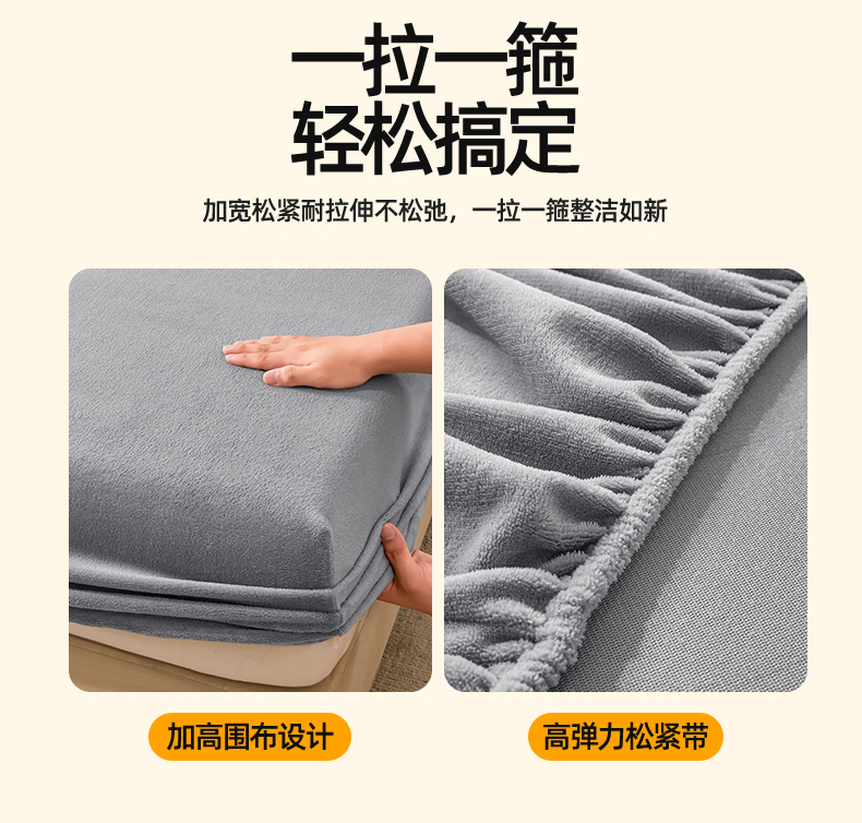 商品名称:卡诗兰家纺 2026新款单层牛奶绒床笠 玛瑙灰