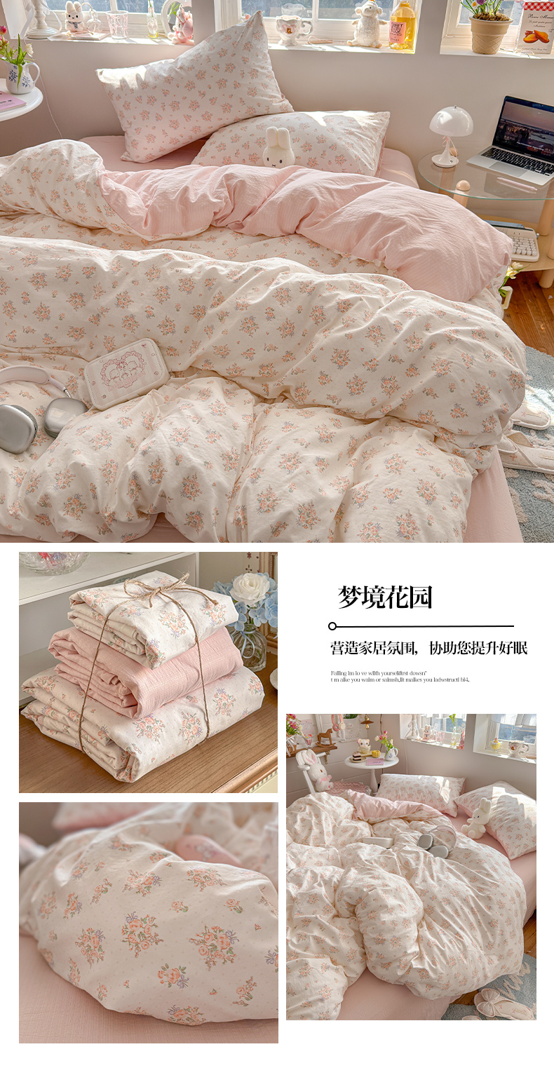 当前位置: 91家纺网 > 商品网购 > 床品套件 > 四件套 > 化纤普通四件套 > 罗亿家纺 2026新款A类古法水洗仿棉云感纱四件套 花集小兔