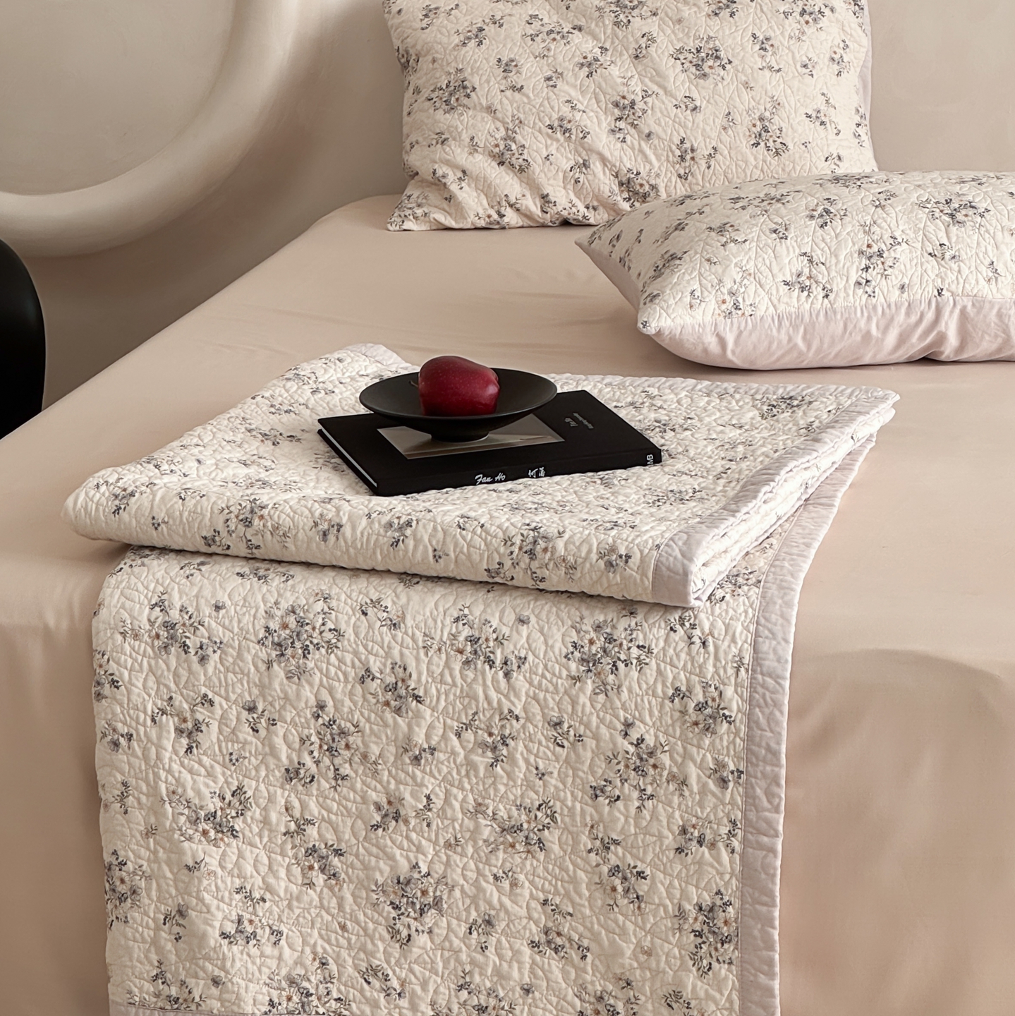 商品名称:床盖工厂店 2025新款双面可用全棉天竺棉麻三件套填充棉花床盖三件套花卉系列 心野薄雾