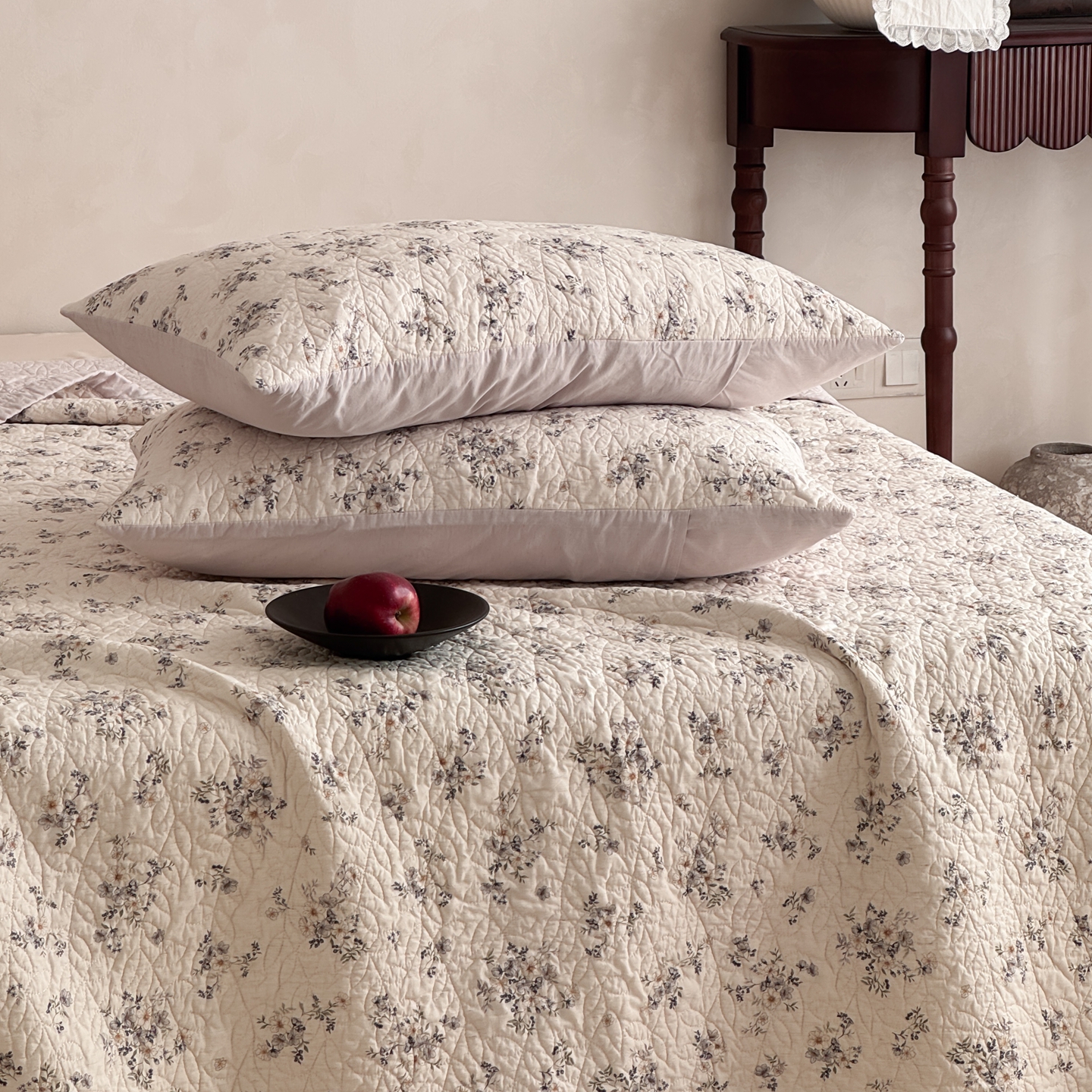 (总)床盖工厂店 2026新款双面水洗全棉填充棉花床盖三件套-朵拉系列,朵拉-粉,朵拉-灰,朵拉-咖,朵拉-绿,组合图