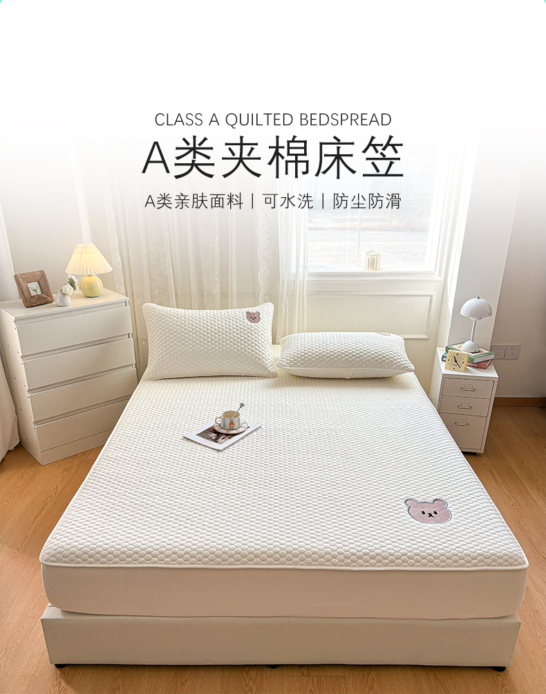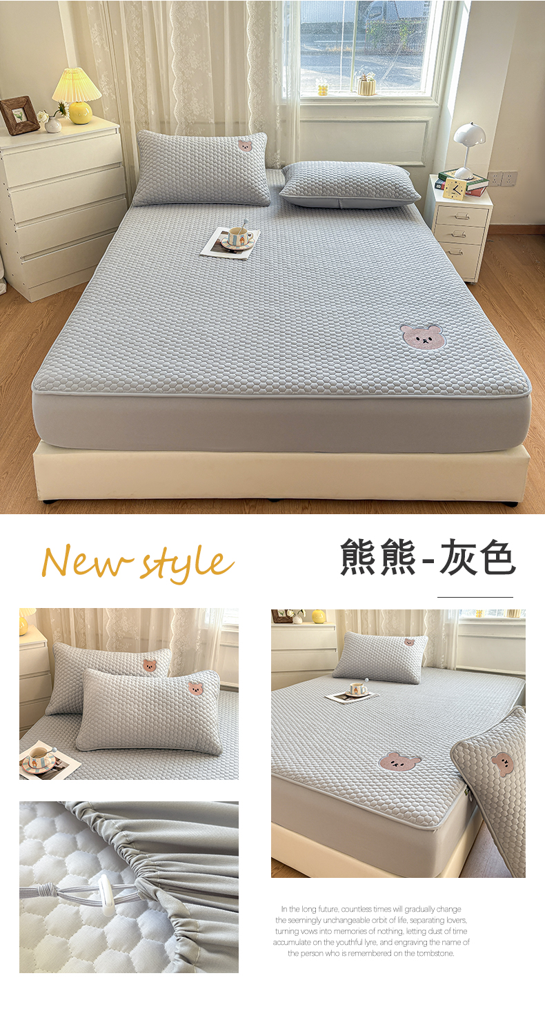 • 91家纺网 家纺一手货源 找家纺 居眠 2026新款熊熊夹棉床笠 熊熊-灰色